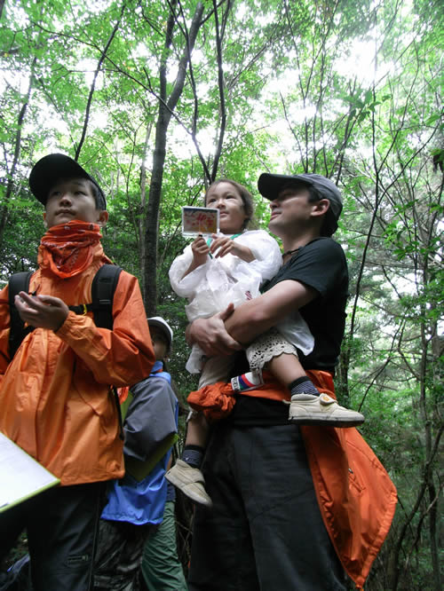 環境学校、二日目は樹海での清掃活動だったが、3歳になる娘の絵子さんが飛び入り参加。私の活動に影響されたのかゴミに関しては敏感。一緒に公園に遊びに行った時にも突然ゴミを拾いだし「パパはお山をきれいにしているんよね。ゴミすてるのはいけないよね」と話しかけてきた時には心底驚いた。仕事の都合上、ほとんど帰宅できていない。2週間に一度、家に帰れればいいほうだ。かみさんに聞いた話だけど絵子さんが「ママ、パパはお山のゴミがなくならないとお家に帰ってこれないんだよね。早くお山がきれいになるといいね」と話したそうだ。