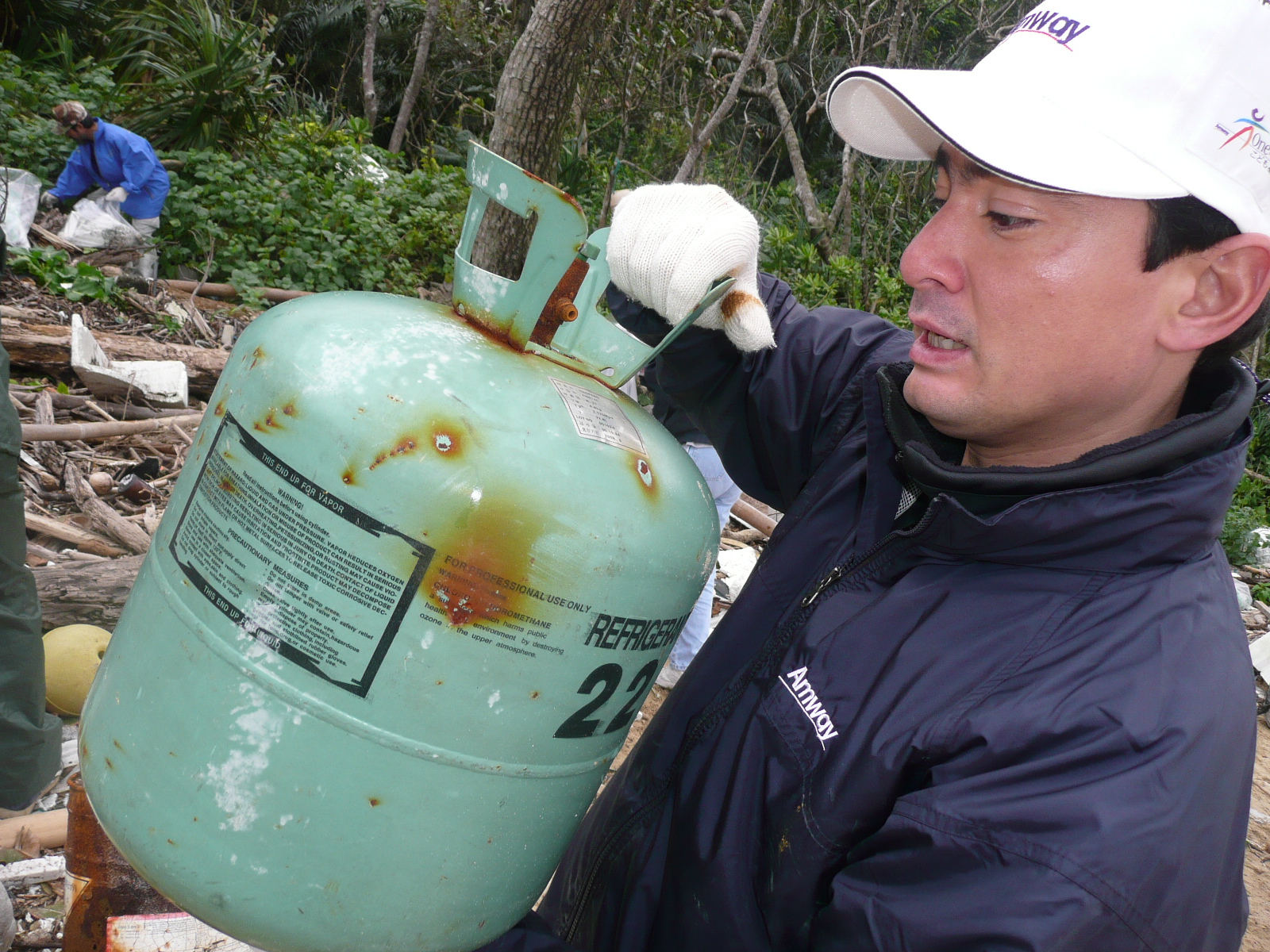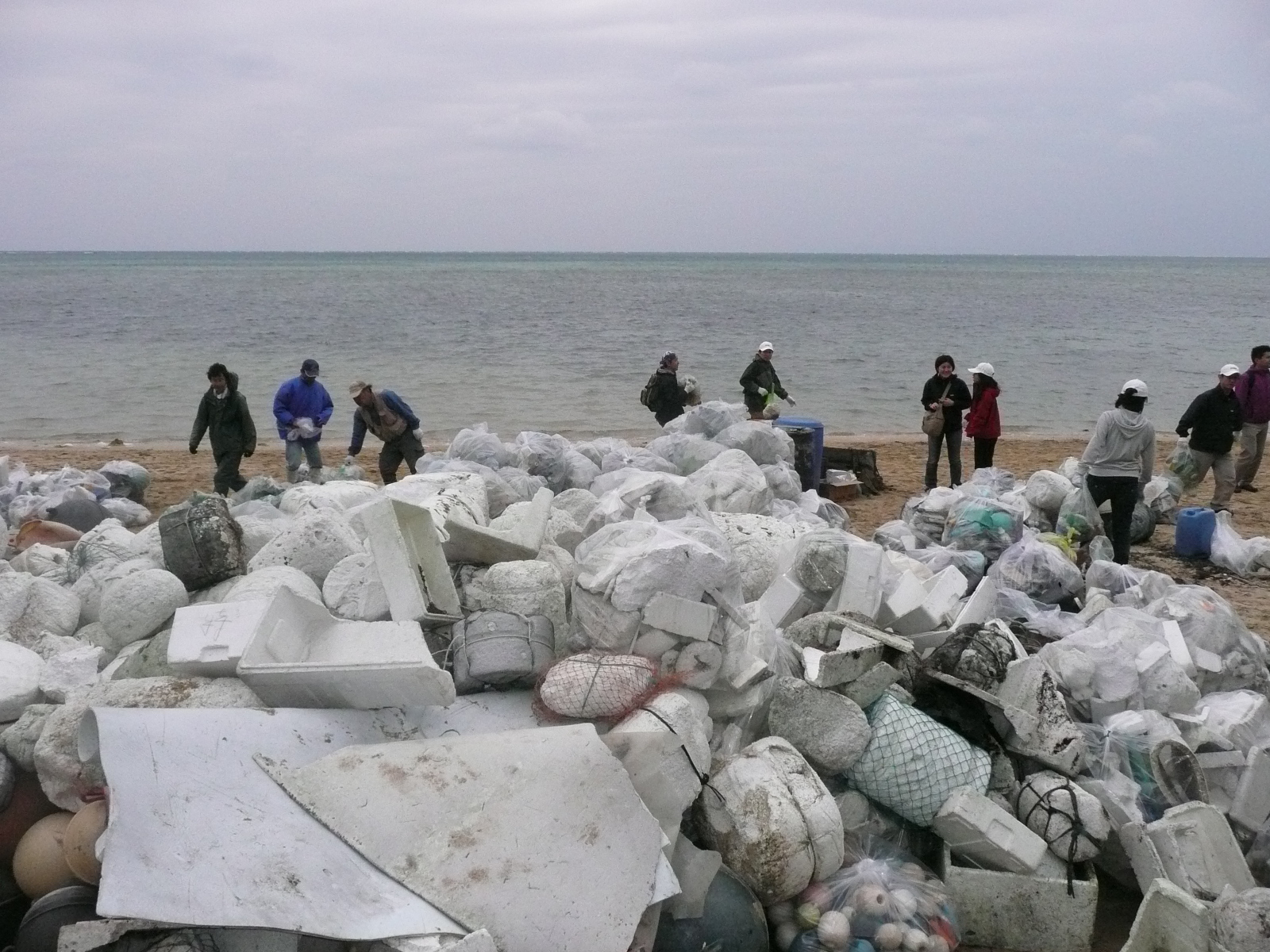 「野口さん、もう一つの西表島の顔を見てほしいんです」と案内された人気のない海岸は絶句するほどのごみ、そしてまたごみ。アムウェイさんと全国さまざまな海岸に訪れてきたが、その全てを圧倒するごみの多さに声も出なかった。東京湾のような大都会での海岸ならまだしも大自然の西表島である。もちろん、ほとんどが漂着ごみであり、またその大半が日本語では記されていなかった。一区画のごみを集め調べてみたら80%以上が中国から漂流してきたものだった。それから何度か西表島での清掃活動を行ってきたが、拾っても拾ってもまた流れてくる。特に台風の後となると手のつけようがない。それでもガイドの森本さんは諦めることなく、終わることのない漂着ごみと闘い続けてる。富士山は清掃した分だけ綺麗になる。もちろん、新たに捨てられるごみもあるけれど、富士山に訪れる日本人観光客の意識は大きく改善してきた。山での清掃活動はある程度ターゲットを絞って訴えていけばそれなりに結果をだす。今では五合目から上部のごみを集めるのが困難なほど。しかし、海外からの漂流・漂着ごみ問題はごみを排出する相手が外国であり、また日常の中からだされたものが多いのでターゲットを絞れない。