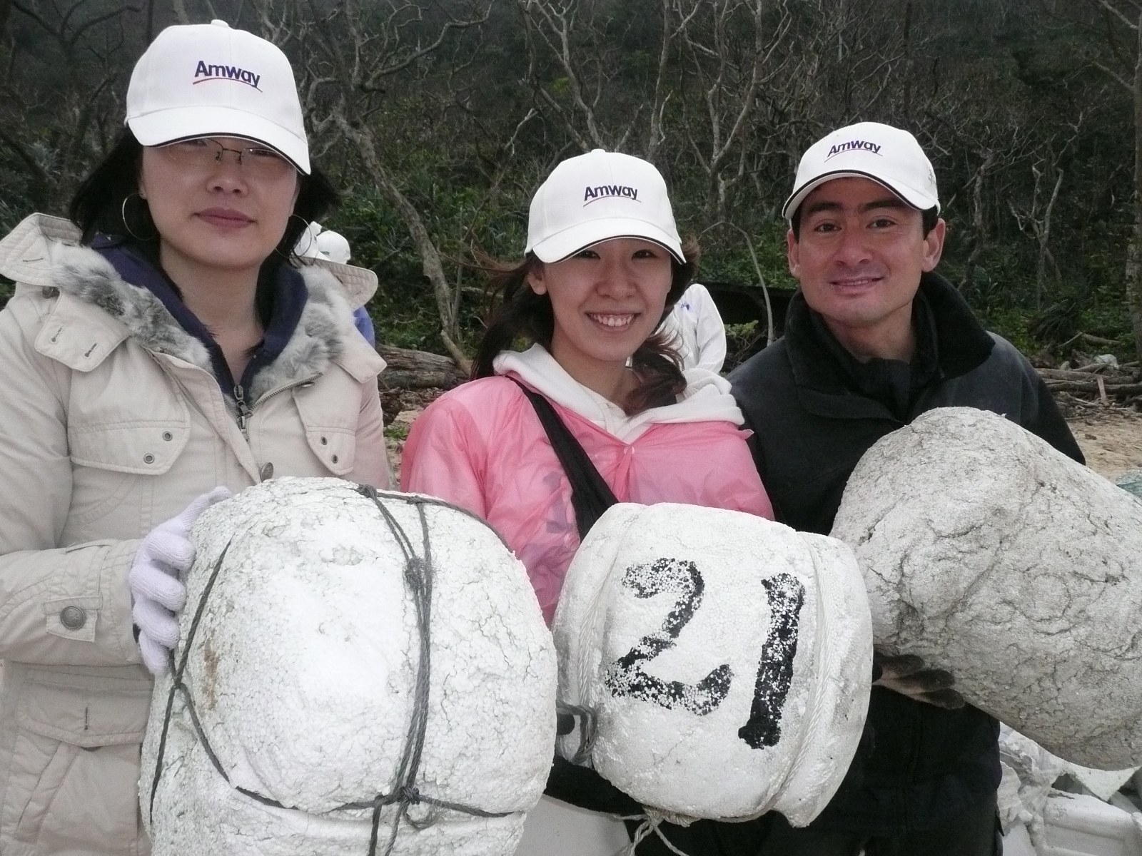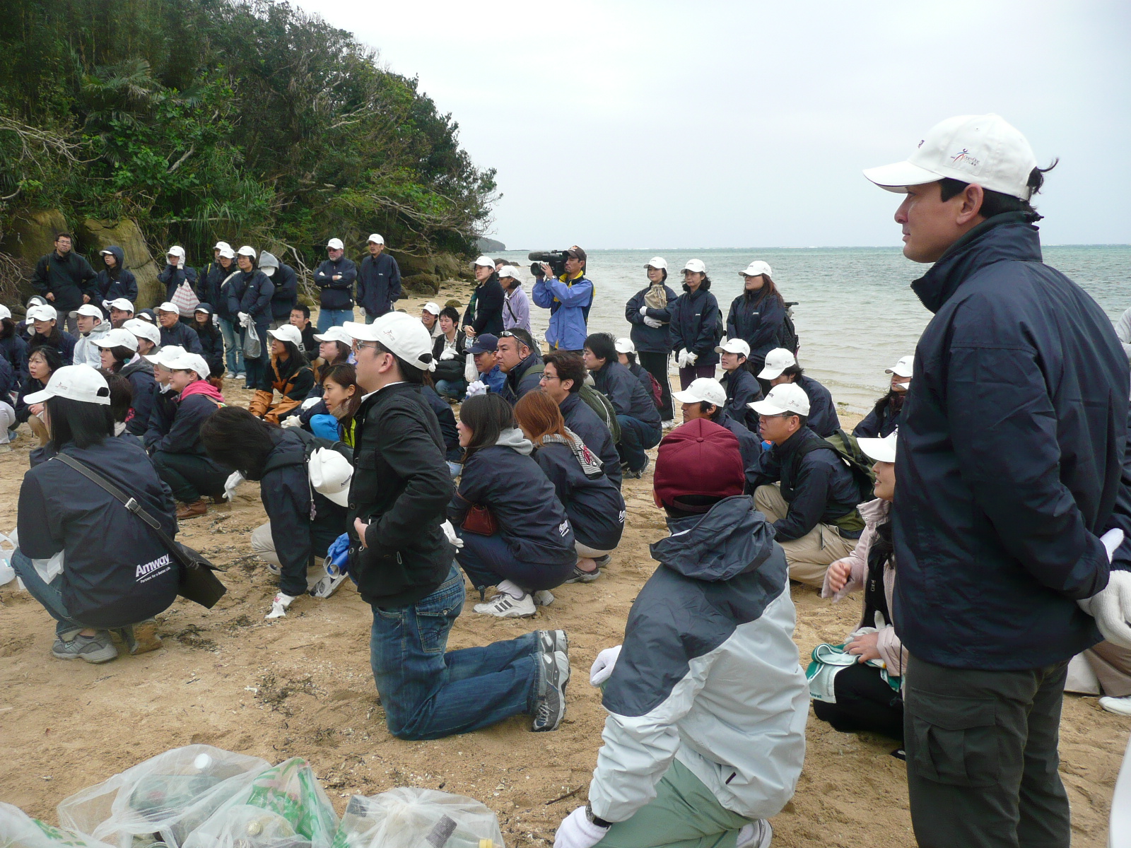 森本さんに「これは日本人だけの問題じゃないですよね。ごみを海に流す相手に訴えない限り一生、100万年経とうがごみ問題は解決しない。中国、韓国に呼びかけようよ!」と話していた。あれから4年。そして日本アムウェイの水本取締役に「日本・中国・韓国」の三カ国での西表島海岸清掃を企画したい」とお願いし今回やっと実現しました。残念ながら中国アムウェイさんは不参加。関係者の話では「中国では環境問題への取り組みは企業の敵」と指摘されるとか。しかし、救いだったのが慶応大学に留学している中国人留学生が4名ほど駆けつけてくださった。