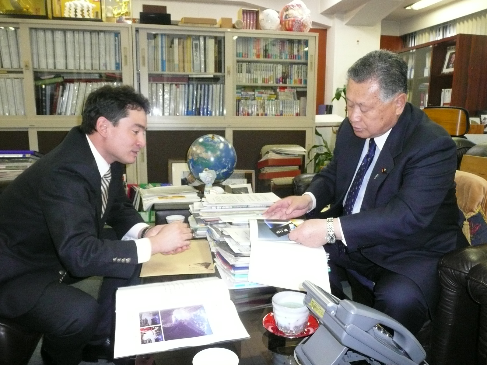 森元総理は「水サミットの時にあなたのスピーチを聞きましたが、ヒマラヤの氷河がそんなことになっているなんて、知らなかったねぇ~。私が総理の時に、橋本先生(橋本龍太郎元総理)から一度ネパールに行ってほしいと言われてね、訪れたが、最終日にカトマンズからもヒマラヤが見えてね、夕方だったからヒマラヤが夕日にピンクに染まっていて美しかった。あの光景は今でも目に焼き付いているよ。あの美しいヒマラヤが悲鳴を上げているんだねぇ~。私も次の国際会議で再びヒマラヤの氷河問題をとりあげます。また私にも色々と考えがあります。ところで、野口さんの年はいくつ?」「えっ、まだ34歳ですか」「いやいや、まだお若いんだね~」と・・・。驚かれていました。どうやら私は老けて見えるようです。森元総理は見た目通り?とても気さくな方でした。
