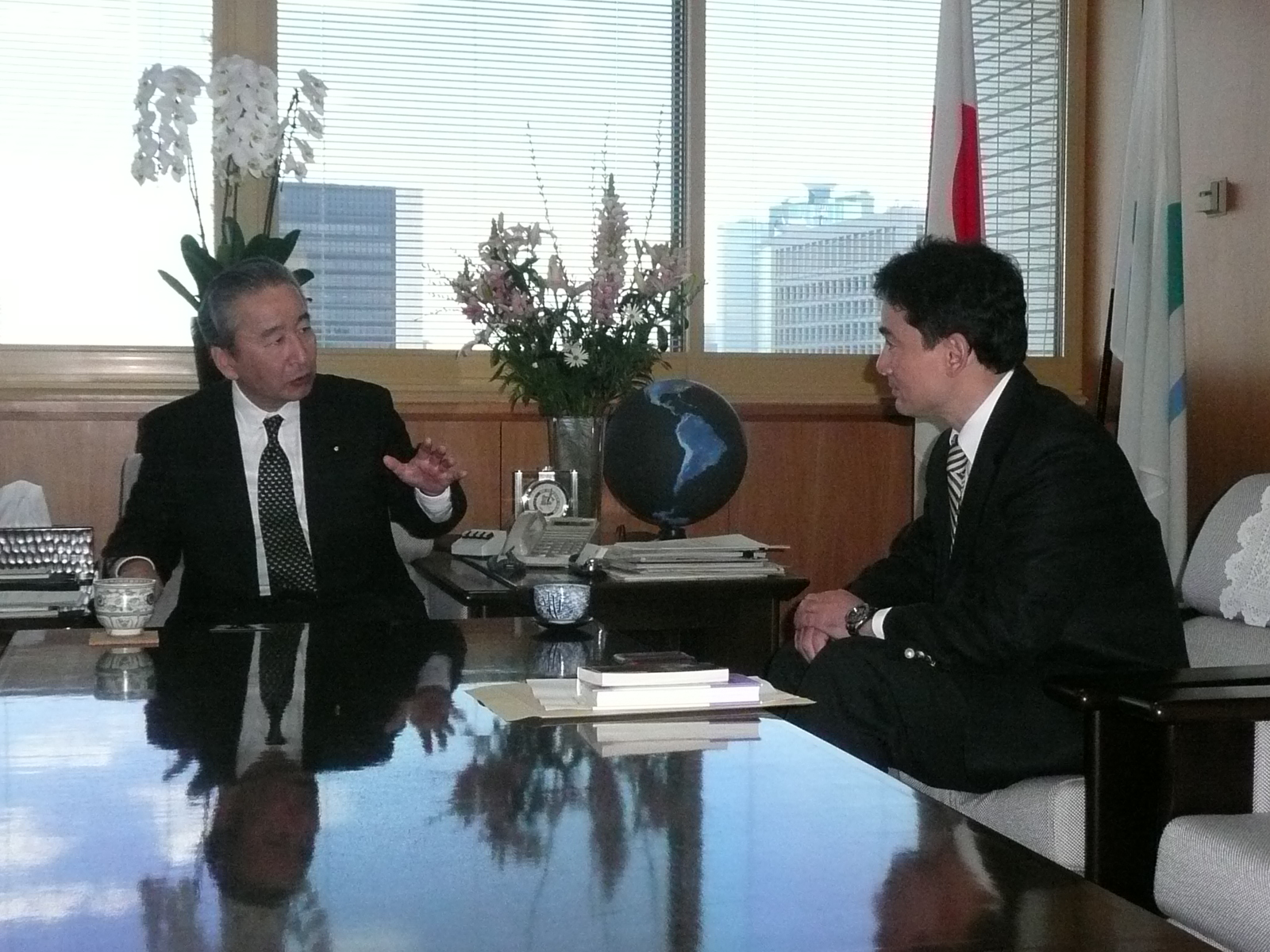 まずは鴨下環境大臣との面会。昨年の12月6日に地球温暖化による海面上昇の影響を受ける南太平洋の島国、ツバルのイエレミア首相との会談で福田首相は「日本政府は海面上昇の原因など地球温暖化の影響を調べるために調査団を派遣する」と伝え、平成20年1月1日~5日に鴨下環境大臣をツバルに派遣。