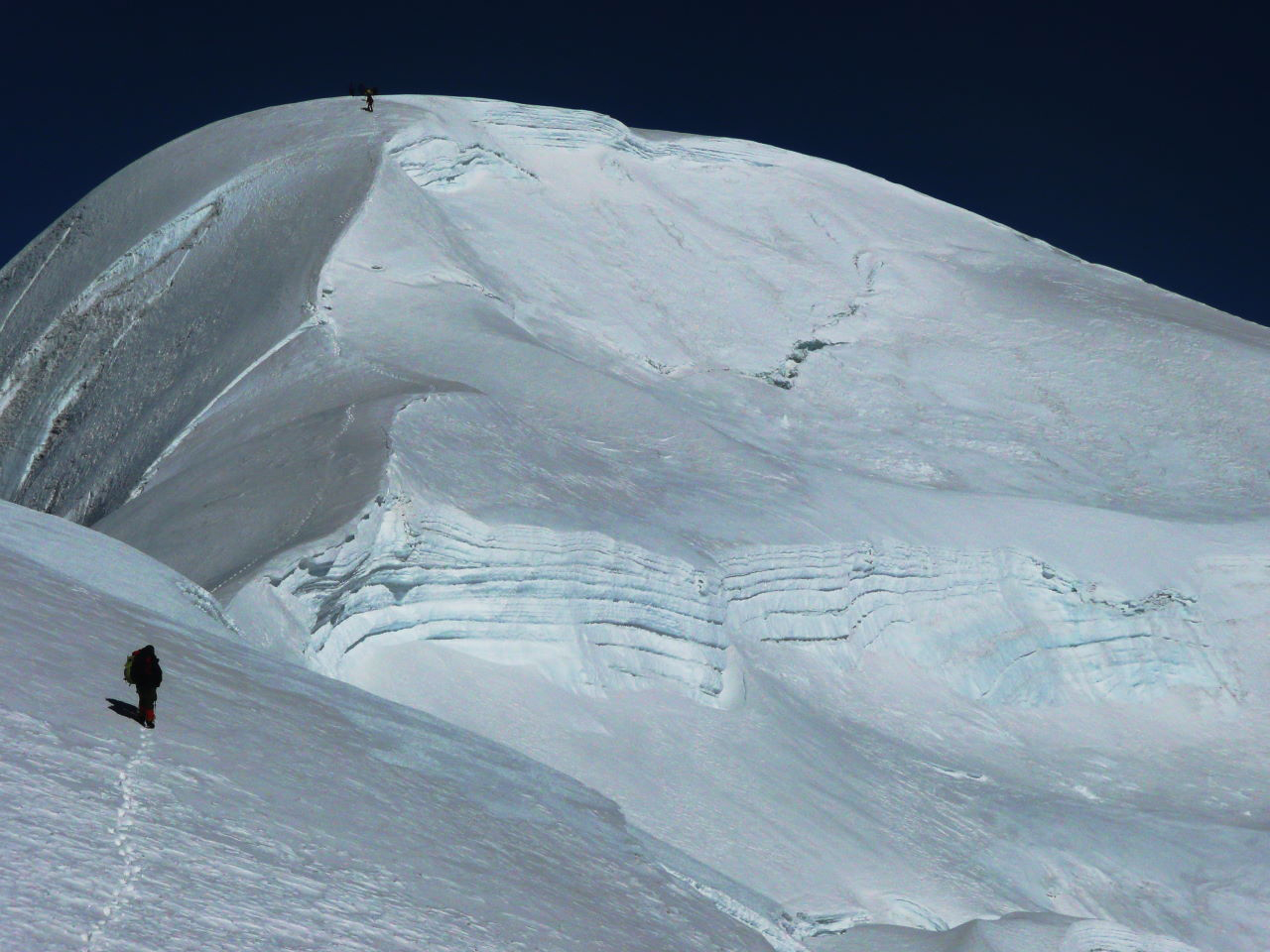 8年ぶりのメラピーク登山。28日にメララ峠を越え最終キャンプへ。メララ峠からは広く長いメラ氷河を一歩、また一歩進む。気の長くなる行程だ。峠だけあって風が強く、まただだっ広いので霧になり視界がなくなると方向を見失いやすい。このメラ氷河をなんど歩いてきたことだろうか。今回で6回目となるメラピーク。