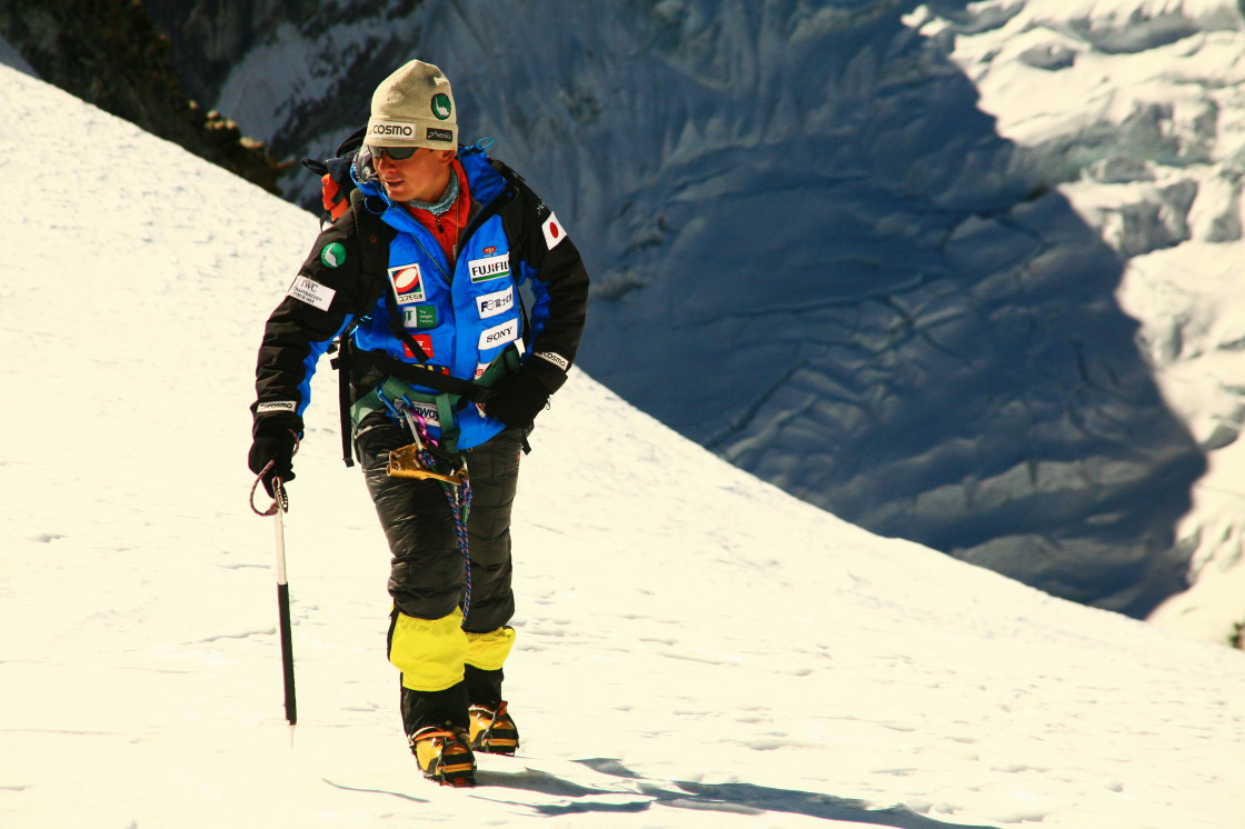 98年6月に秋のエベレスト再挑戦を控え最終トレーニングとして亜大山岳部の長尾とメラピークに登っていた。下山時に2度ヒドンクレバス(表面に雪が被さっていて見えないクレバス)を踏み抜いて落ちた。幸いな事にロープを付けていたので宙ぶらりんとなり、なんとか這い上がり助かったが、落下した際に、あごを氷に打ちつけ瞬間的に意識を失った。しばらくあごが痛くて歩く振動さえ苦痛だった。