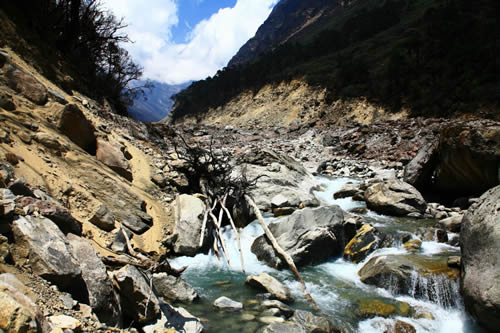 翌日、タンナ村を離れ下流約5キロのコテ村まで下ったが川岸の道程も土砂とともに巨大な岩が押し流されてきており、歩行困難な状態であった。改めて水の破壊力を思い知らされた。新聞報道によればサバイ氷河湖の貯水量は1700万立方メートル。エベレスト街道上部にあるイムジャ氷河湖に至っては現在直径一キロ、深さ約90メートルにも達し、約3580万トンの水を貯水している。日本人に分かりやすく説明するのならば東京ドーム32個がすっぱりと入るとのこと。一目にサバイ氷河湖よりもイムジャ氷河湖のほうが遥かに巨大なことが分かるだけに、もしイムジャ氷河湖が決壊すればサバイ氷河湖決壊時の被害(死者2名・橋が5つ流された)では済まされない事など一目瞭然である。ただ、不幸中の幸いはサバイ氷河湖の下流にも大きな村もなく人的被害は極めて限定的であったこと、数万人が生活し行き来するエベレスト街道での上流での決壊となればその被害は想像しただけでもゾッとさせられた。