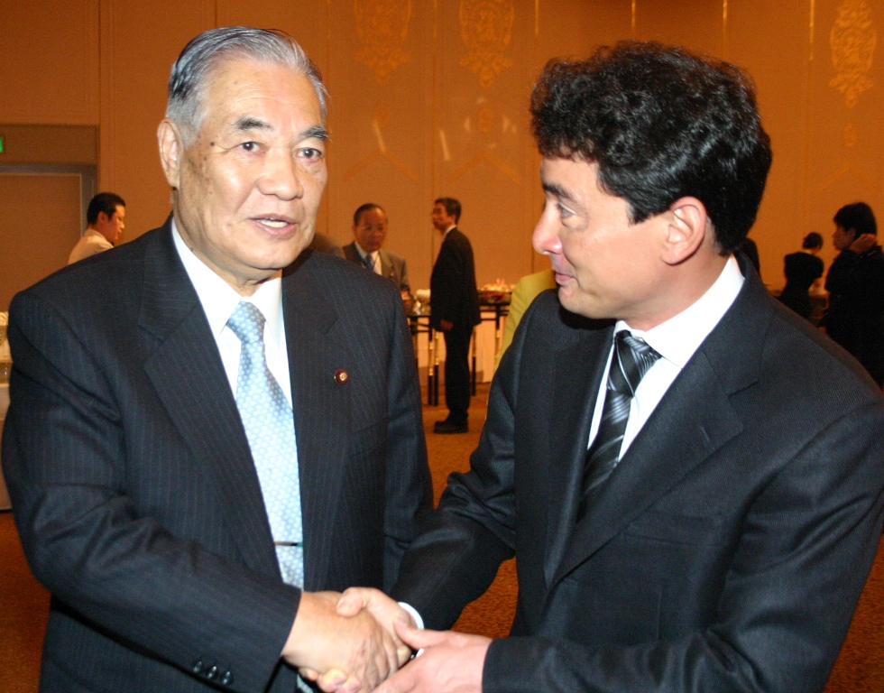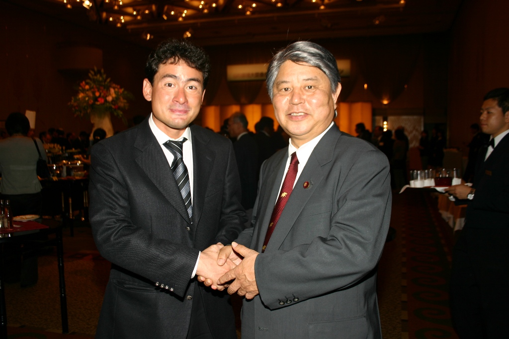 盛山正仁衆議院議員(左)と鴨下一郎環境大臣(中央)と
