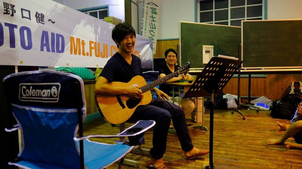 富士山登頂後、森の学校に藤巻亮太さんが駆けつけて下さった。亮さんはテント村にも来てくれて、子供たちとサッカーをやってくれました。