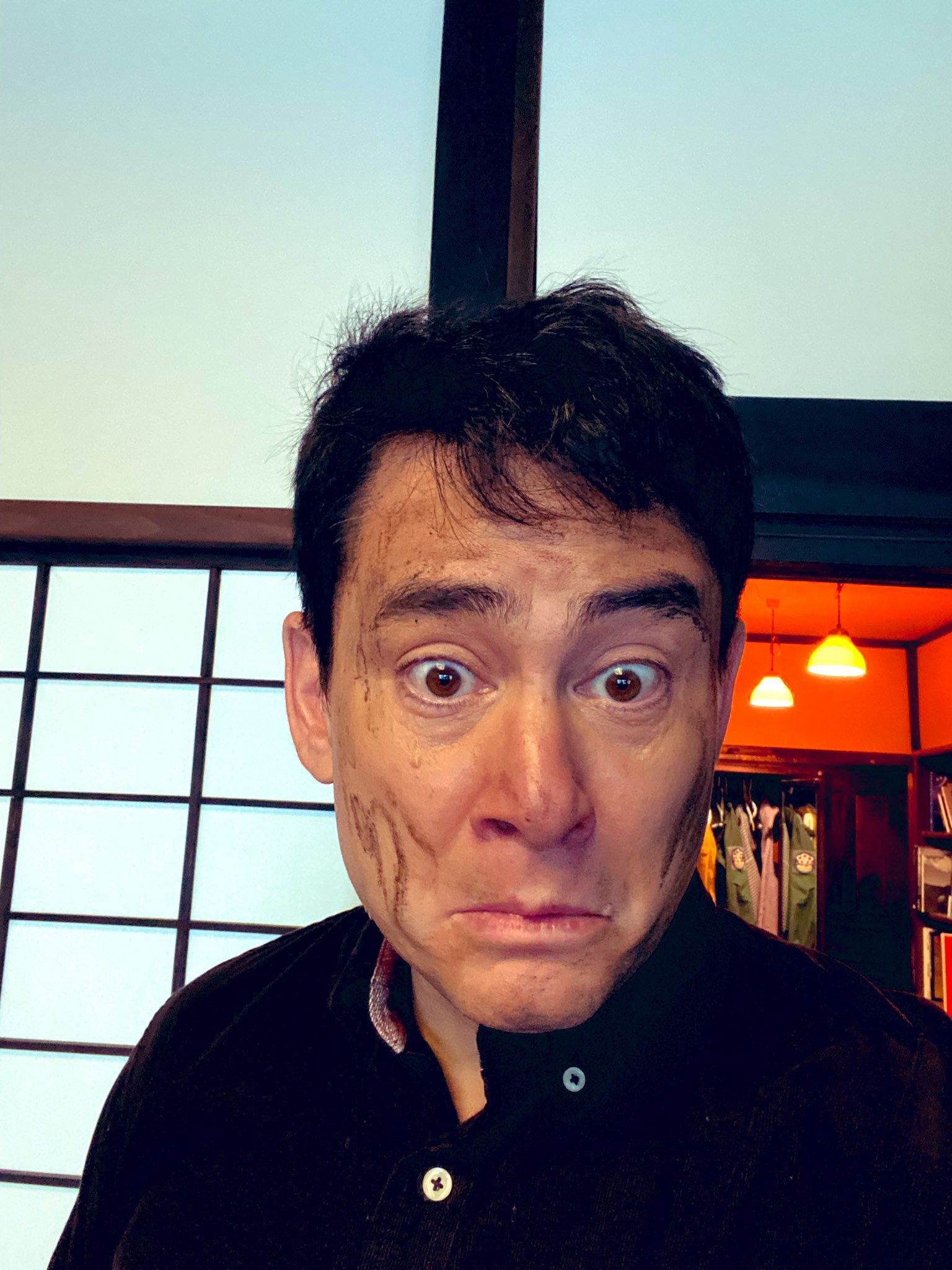 今日は丸一日、スコップと格闘。作業を終えて家の中で鏡を見てビックリ(°_°) 顔が泥だらけでした。