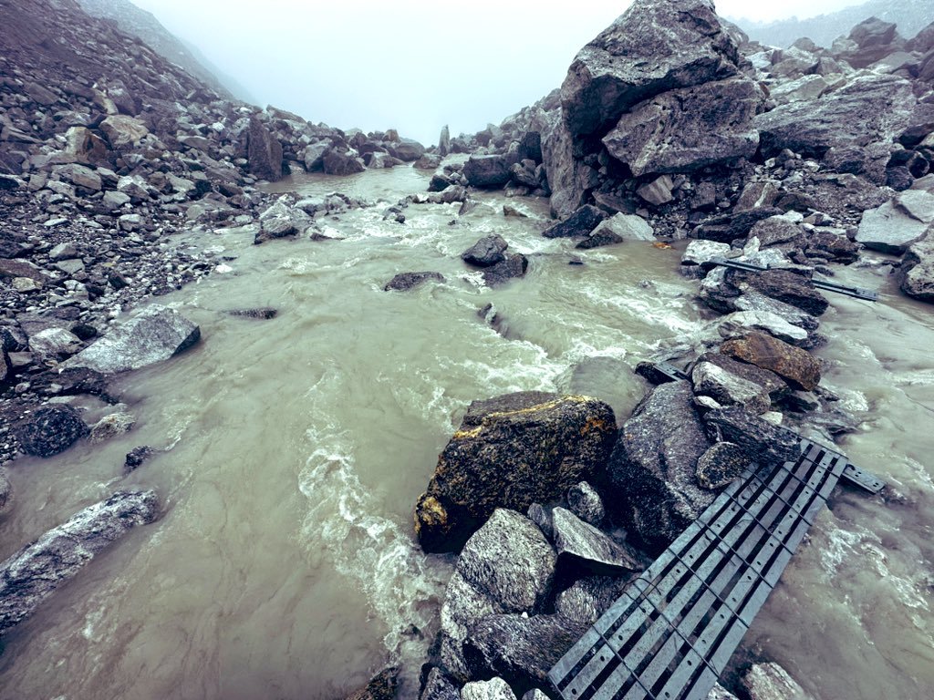 驚いたのはロブチェからゴラクシップの間のモレーンが溶けて皮になってある。ここの場所でこの状況は始めて。