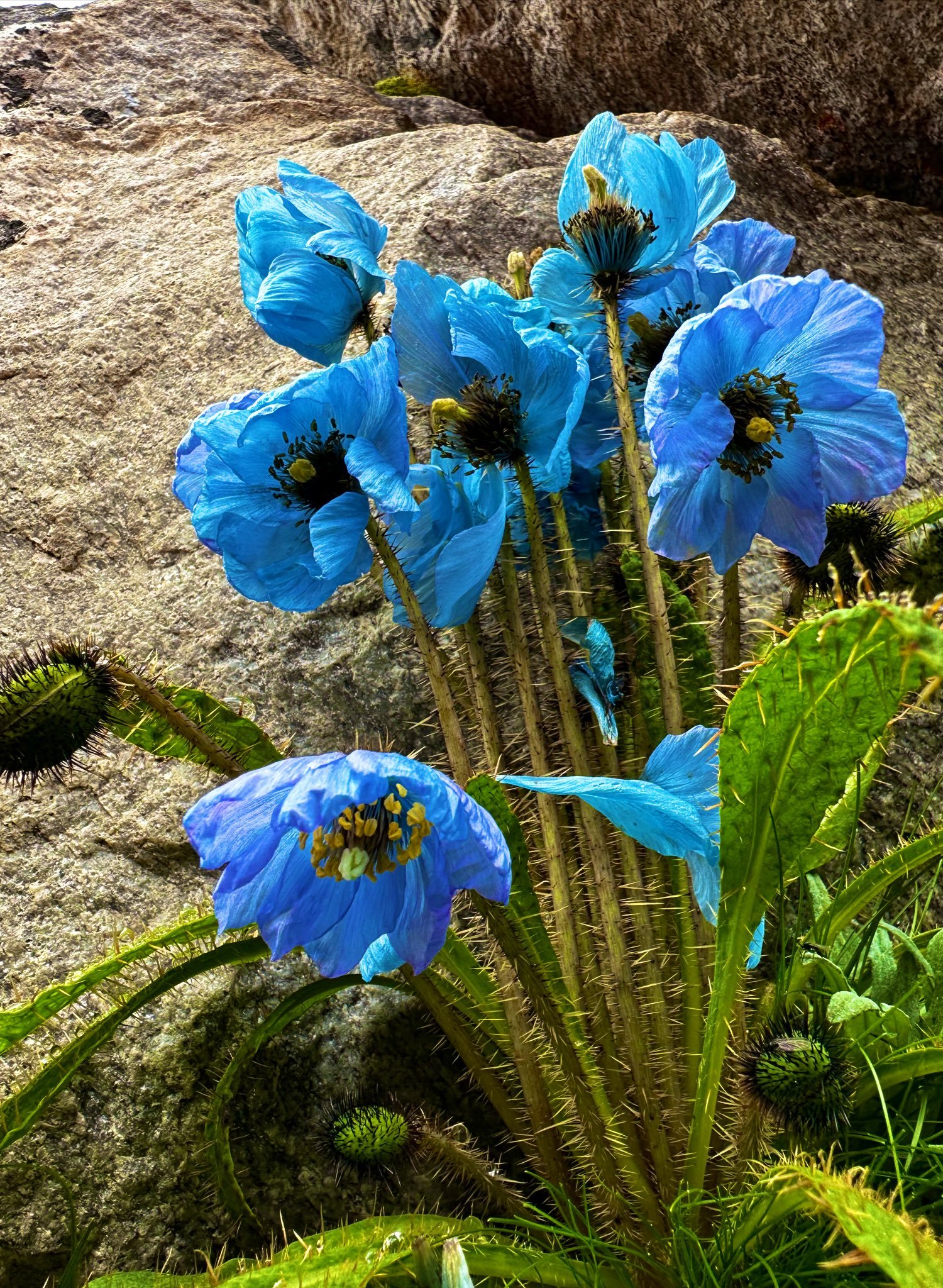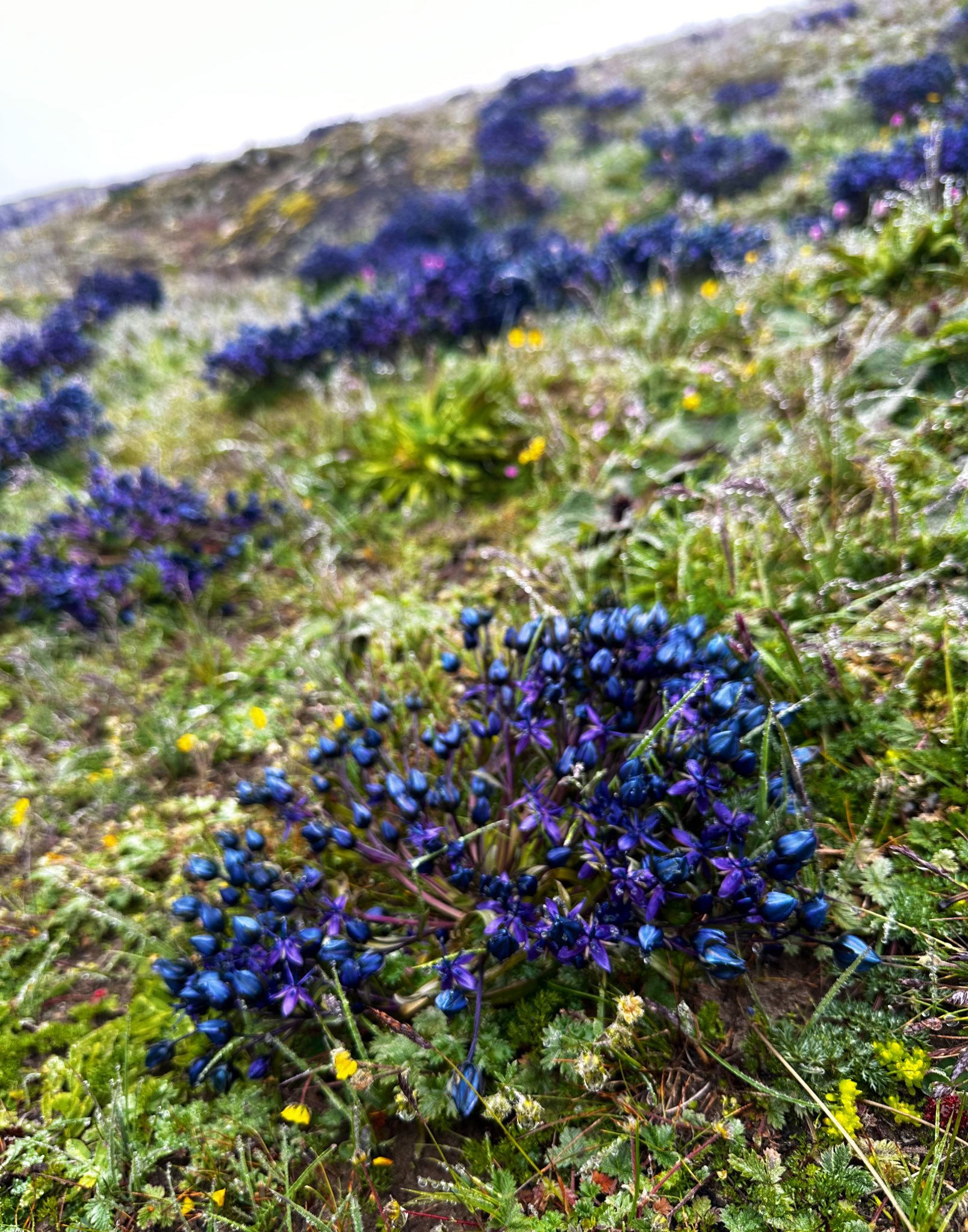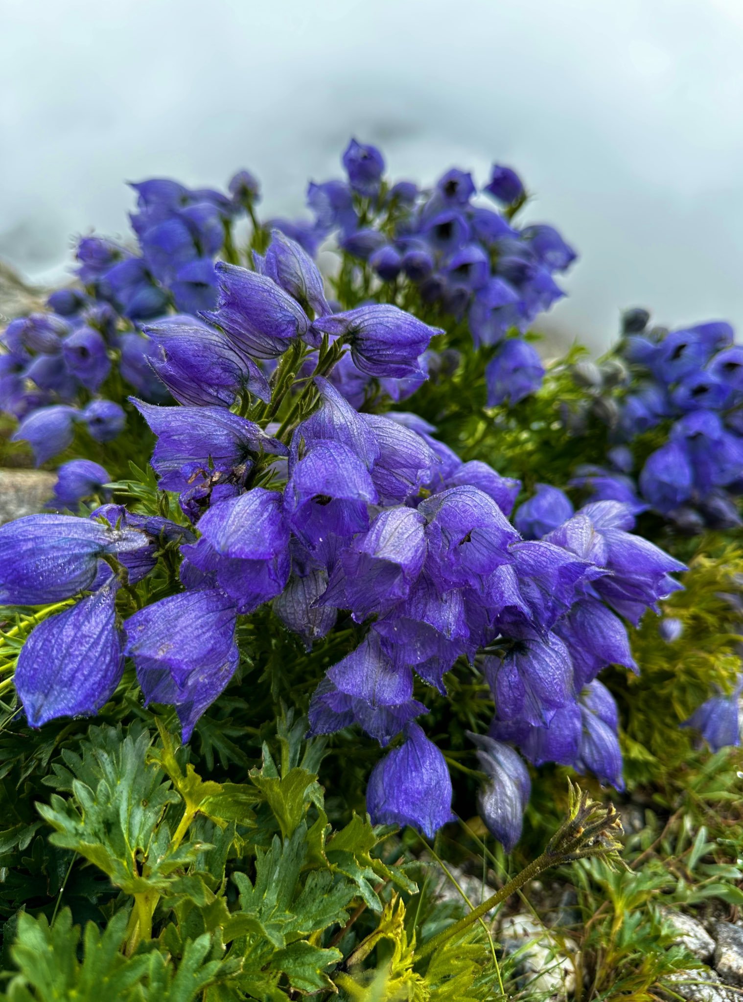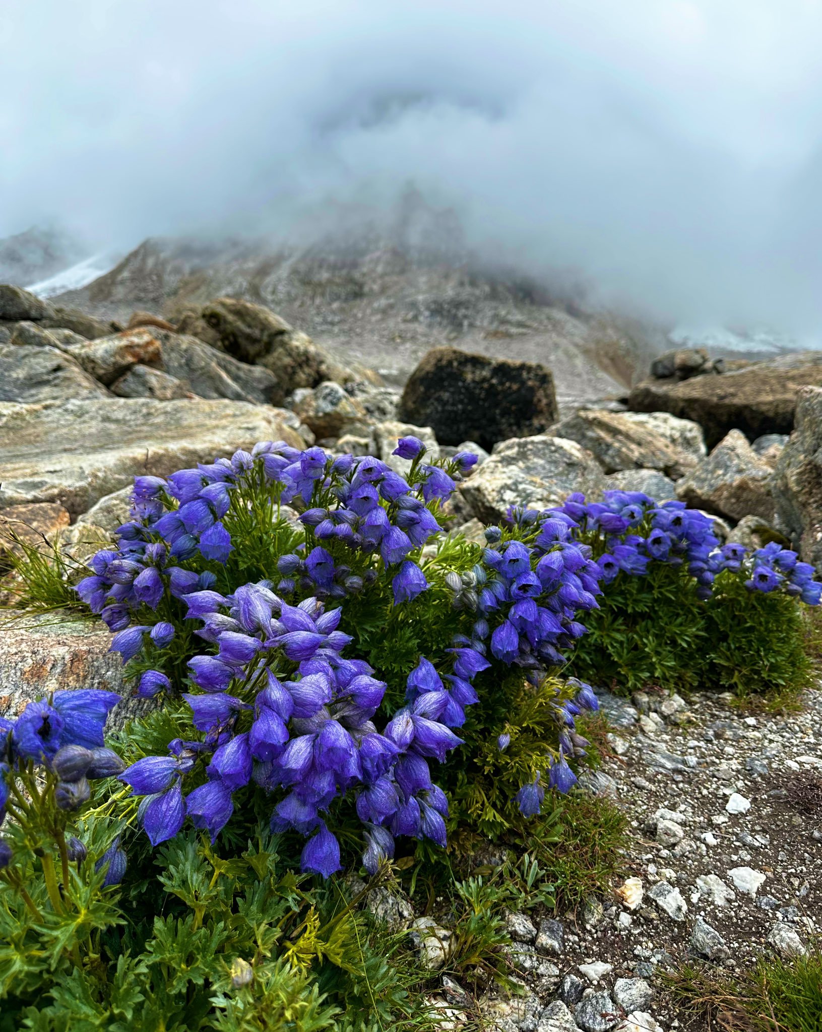 今日も登りながら色々な花と出会いました。名前が分からないのですが。 モンスーンは雨に打たれて大変ですが、しかし、登山シーズンにはない景色と出会えます。 今日もクンブ氷河のほとりでブルーポピー。