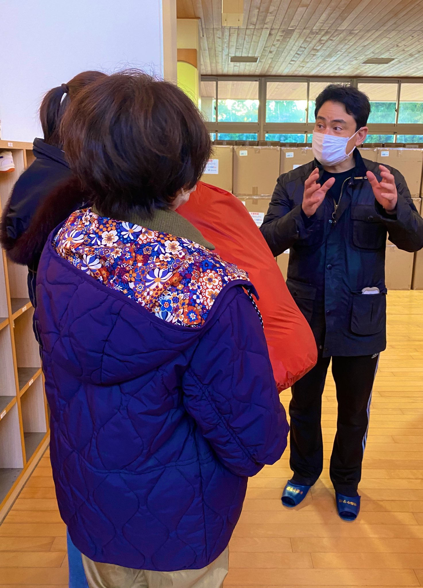 寝袋を学校にお届けした時に車中泊されている方々が寝袋を受け取りにいらっしゃいましたが、車中泊の壮絶さを語りながら中には涙ぐむ方も。「寒くて2時間も寝られないです」と。