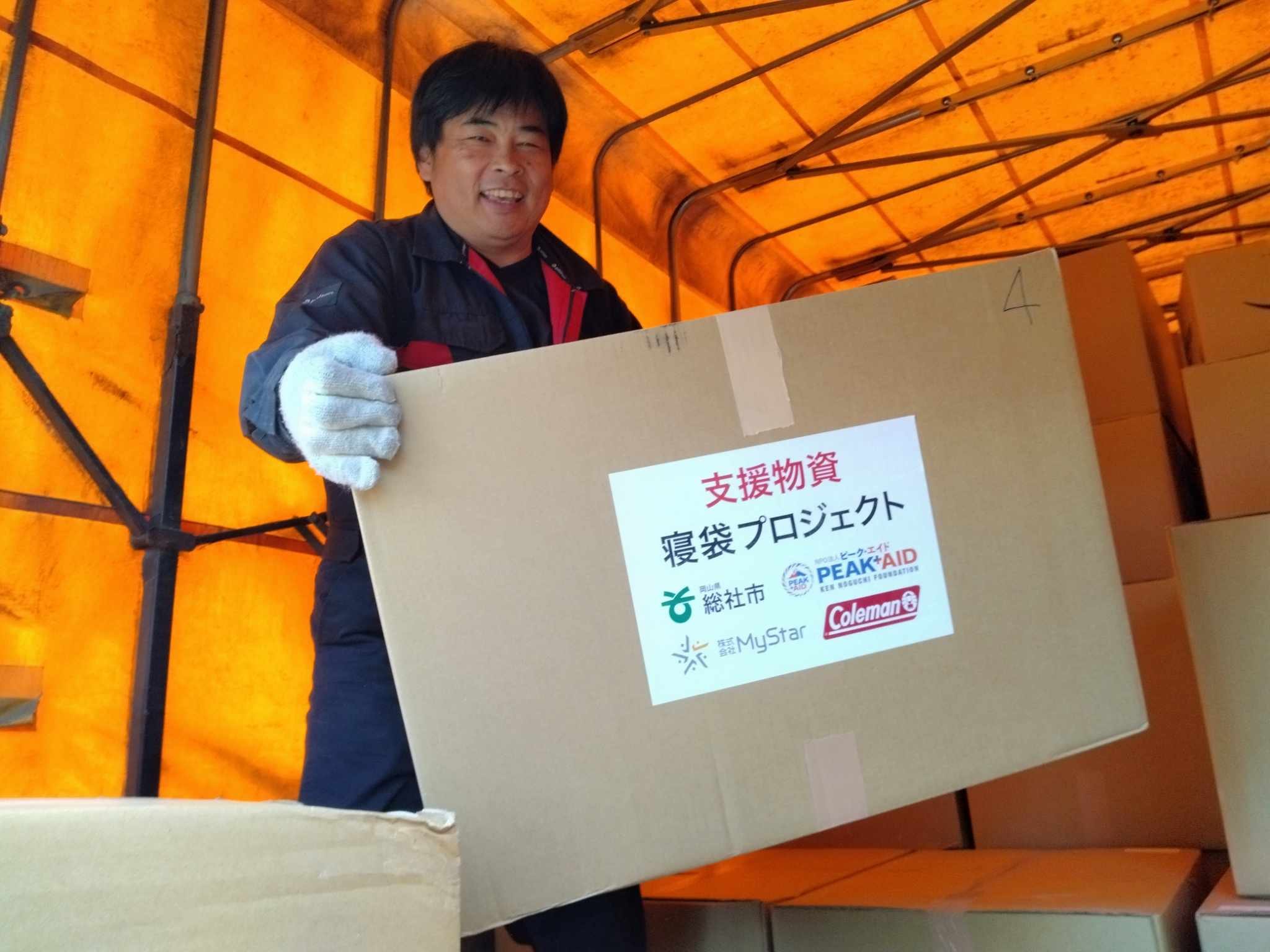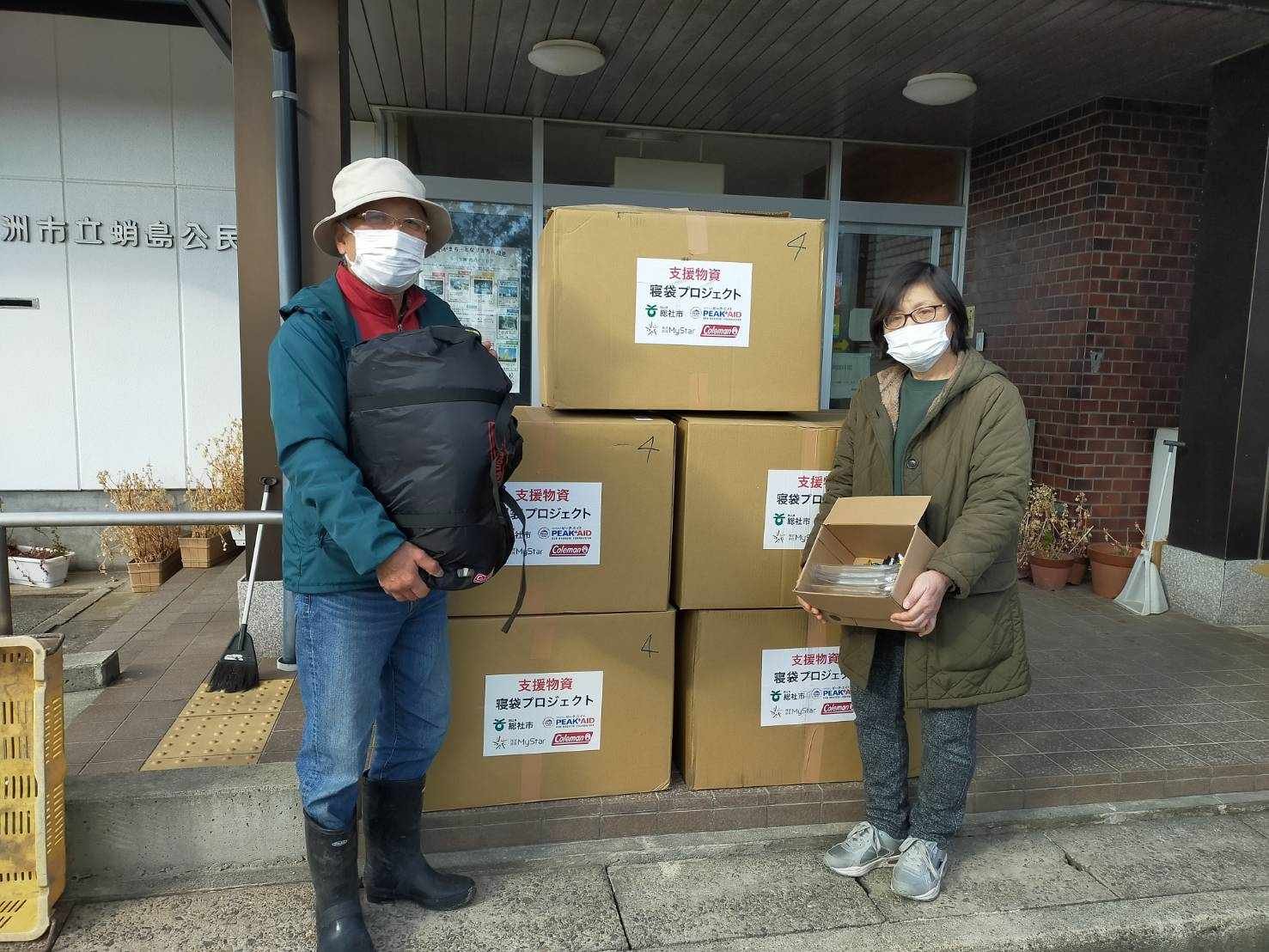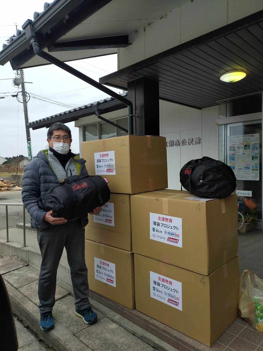 DPLS-JAPANの土屋さんとフェニックス救援隊の古川さんが先日、ピークエイドに届きました救援物資(寝袋186個、エアマット36枚、キャリーザサン50個を珠洲市の公民館、神社や民家に運んで下さった。有難うございます
