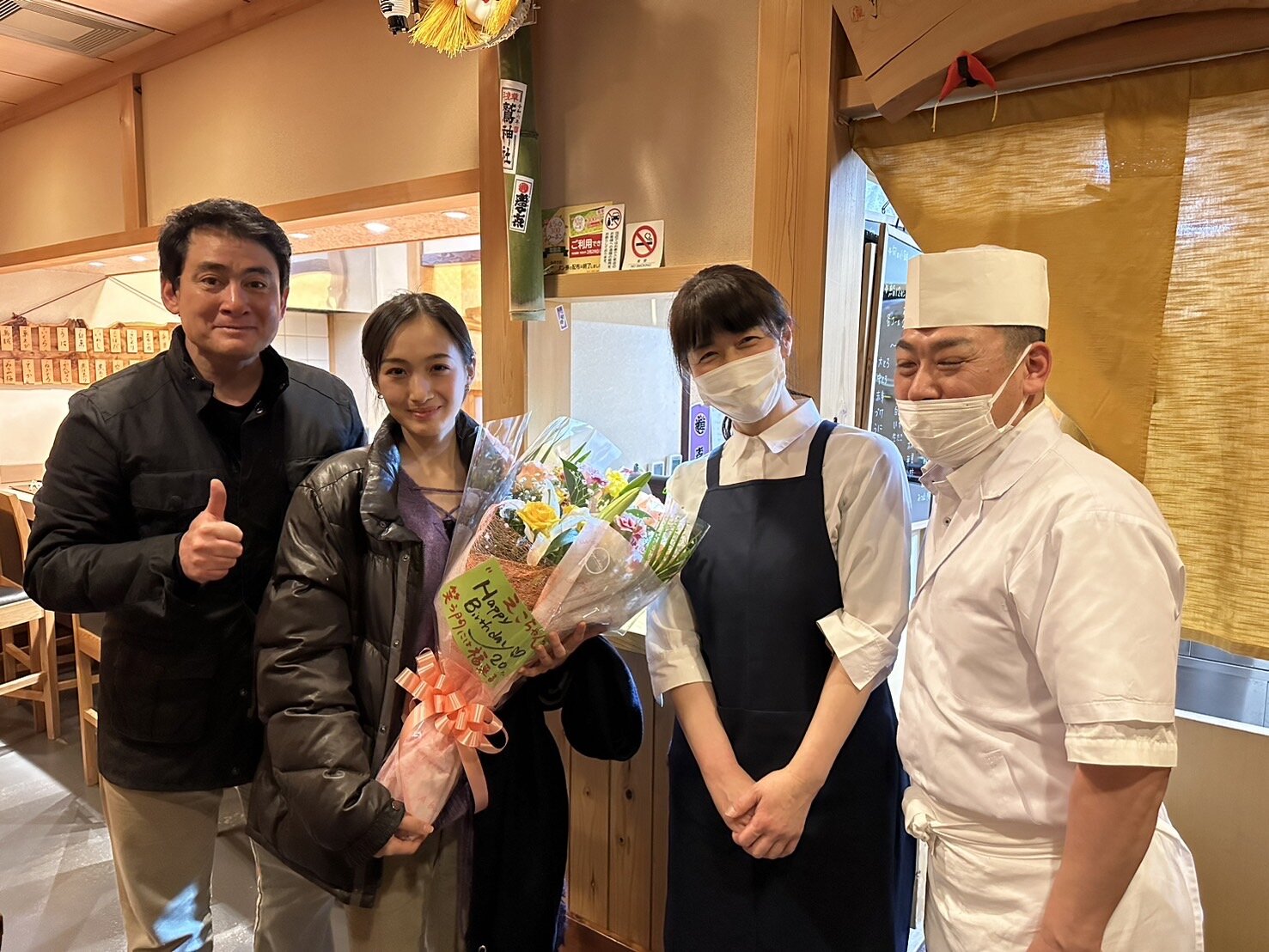 そして何よりもみつ山さん、素敵なお寿司に、ケーキにお花までどうも有難うございました。絵子も感謝、感謝ですね。