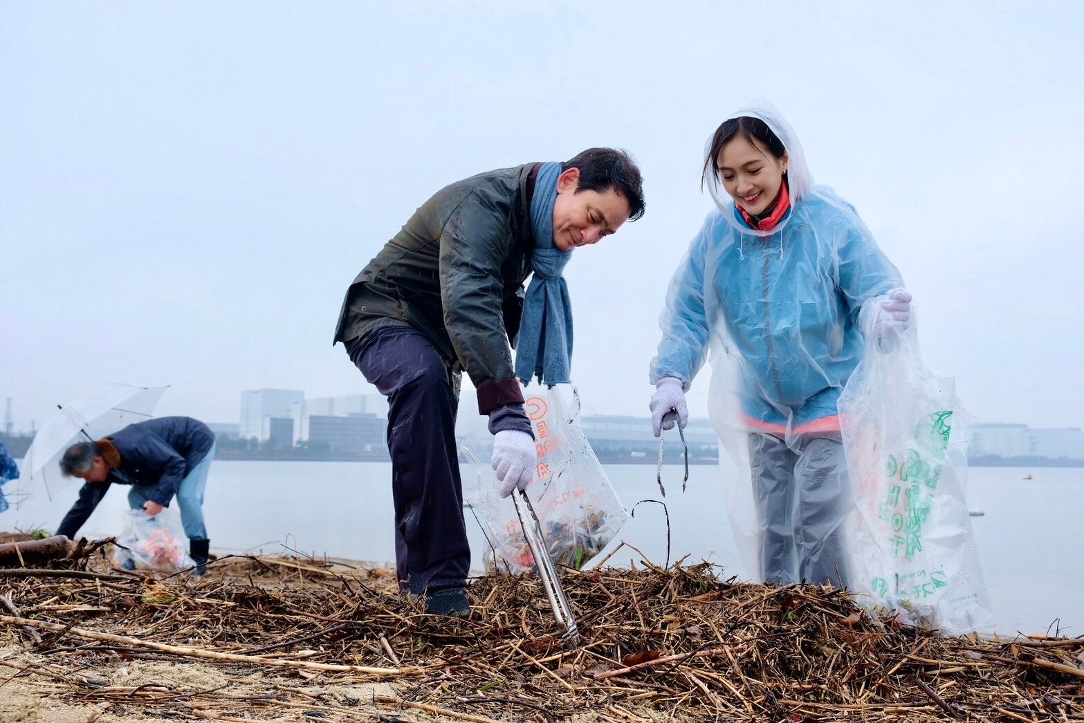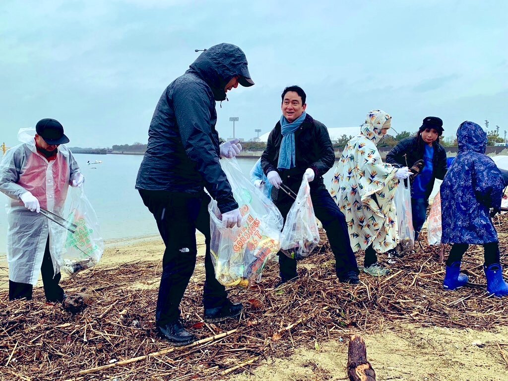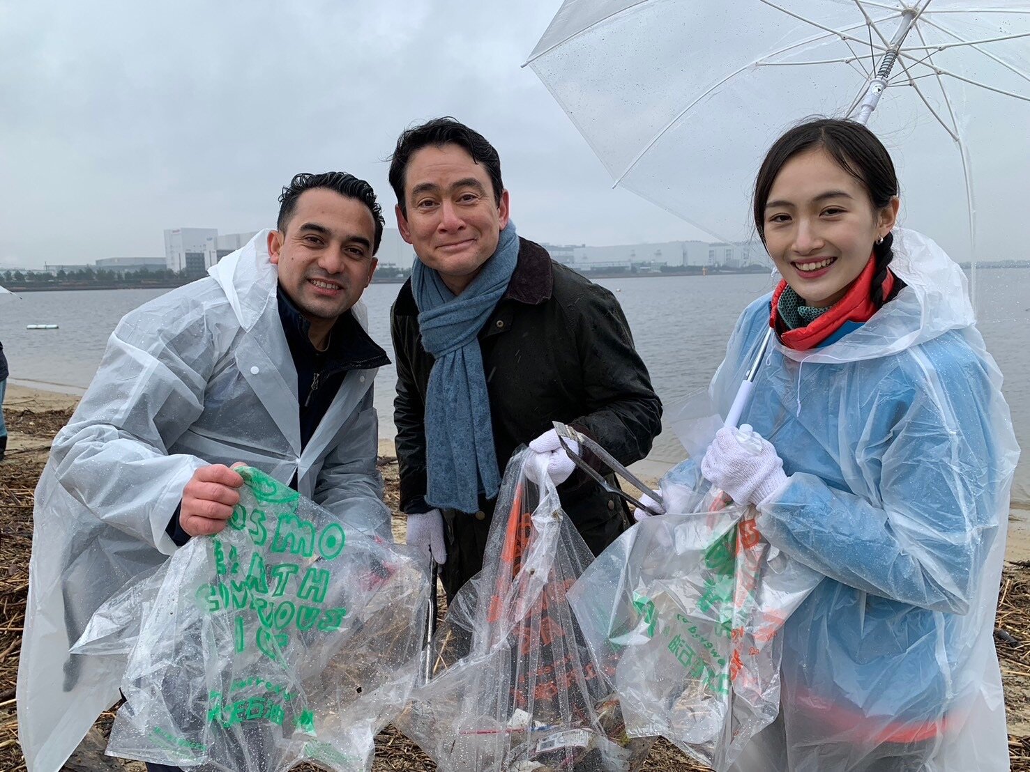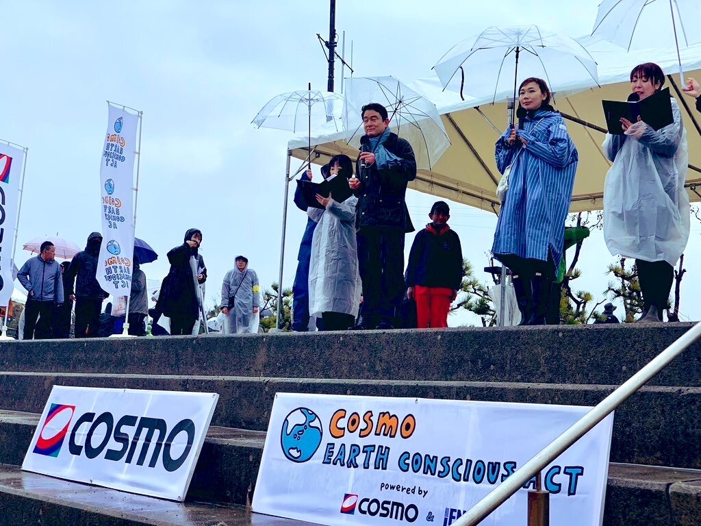 大阪の堺市での「コスモアースコンシャスアクト」の海岸清掃キャンペーンに参加!!! 寒い雨のなか、150人ぐらいかな、参加者の皆さん、極寒の中、よ〜く来てくれました。もう、感謝、感謝、感謝!!!