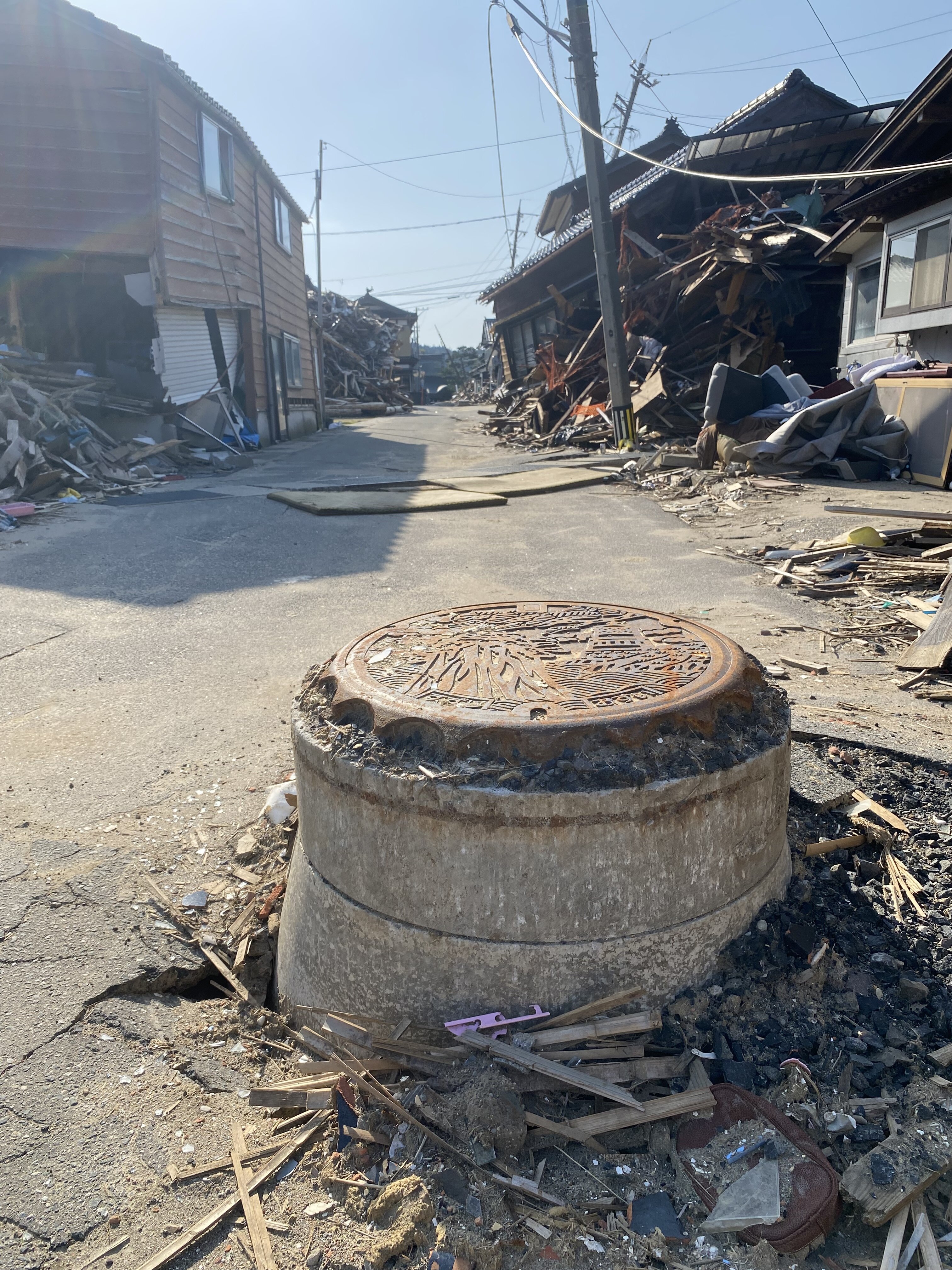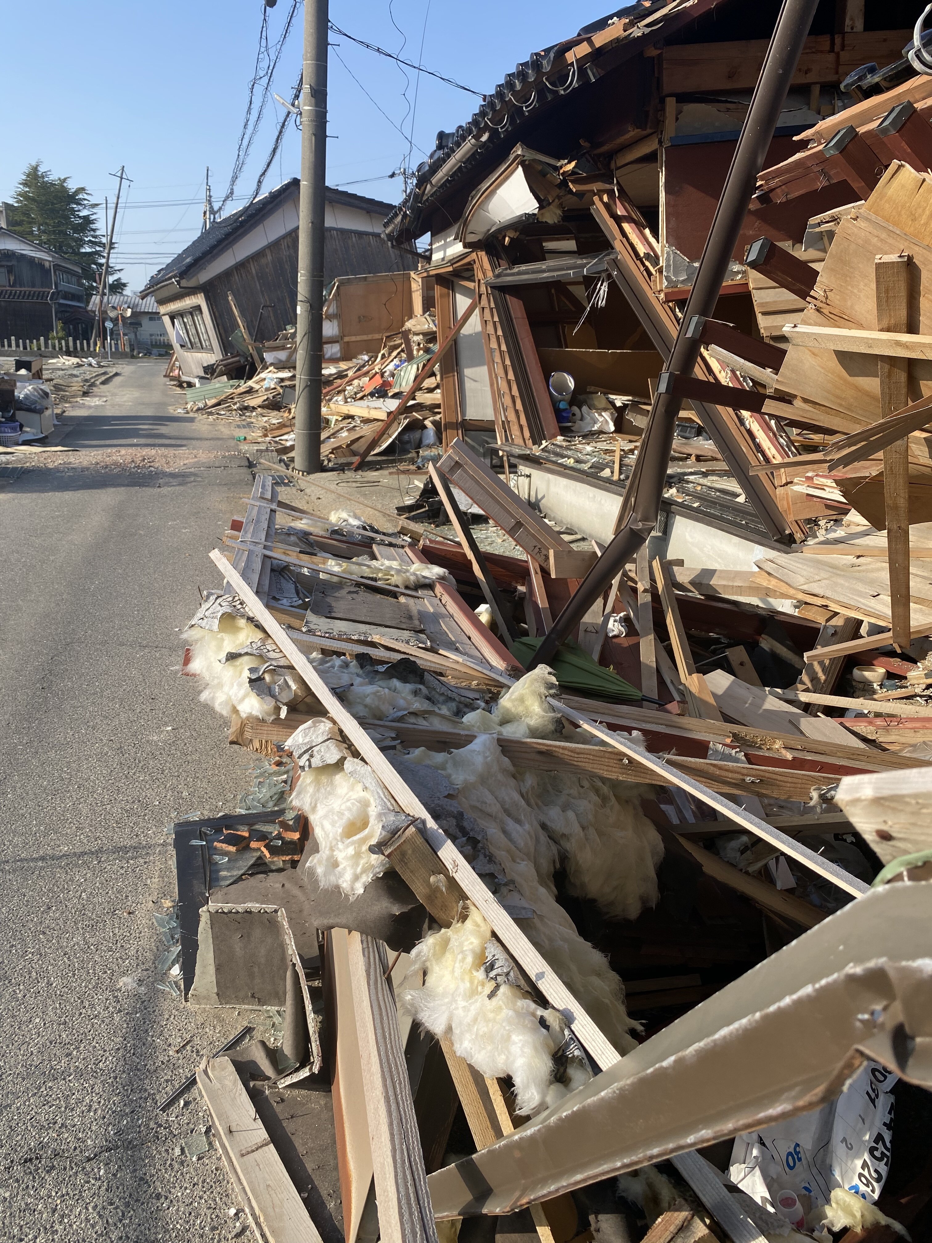 1ヶ月ぶりに珠洲市に入りましたが、住宅街の中を歩くとほとんど歩いている人の姿を見ない。瓦礫も災害ゴミもそのまま。2ヶ月前に始めてこの街に来ましたが、その時に見た光景とほぼ変わらないまま。