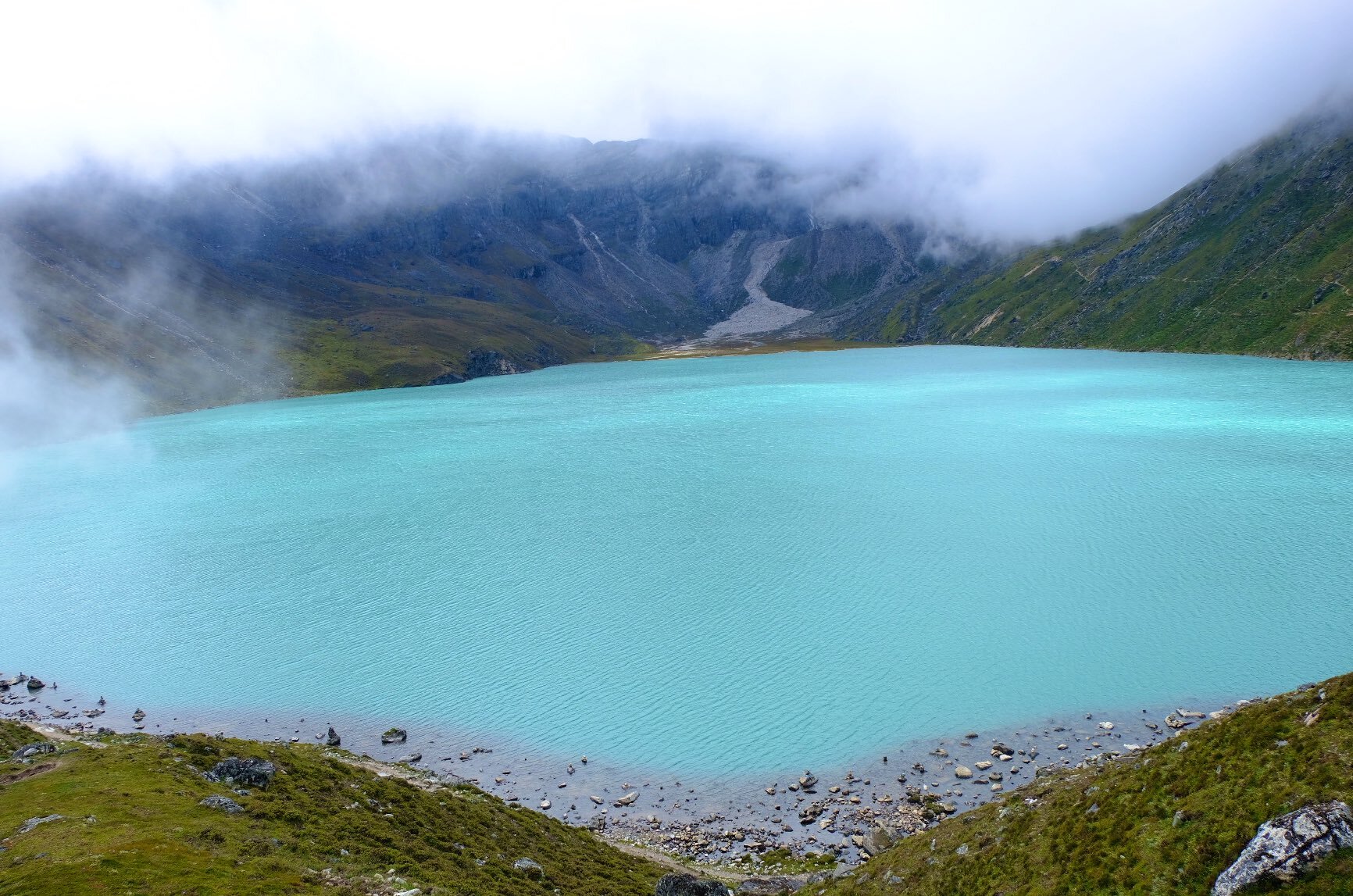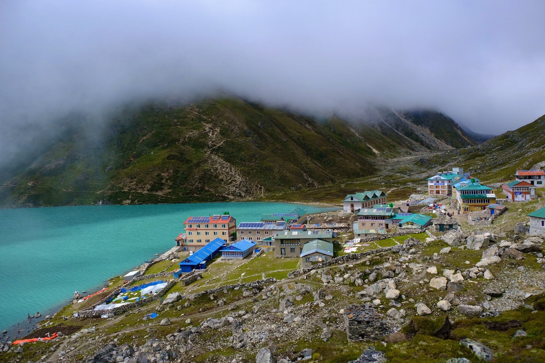 姿を刻々と変えていくゴーキョレイク 夏に来るとエメラルドグリーンが圧巻。 冬は真っ白に凍りついていてそれはそれで美しいのですが、やっぱりモンスーンのヒマラヤ、僕は好きだな。