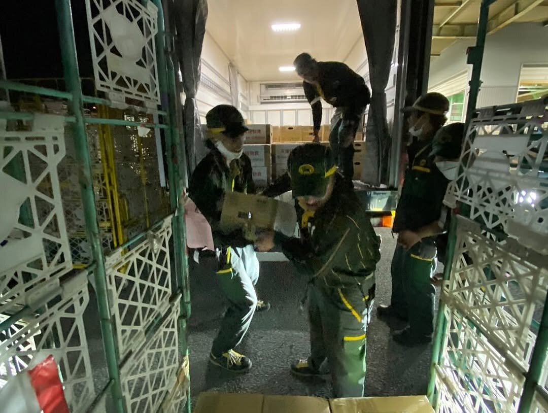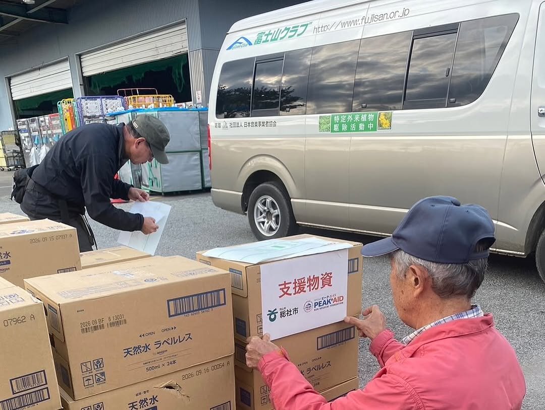 富士山クラブのスタッフの皆さん、そしてクロネコヤマトさんの皆さんが汗を流して下さりました。珠洲市に向けてまずは300箱が出発!!!