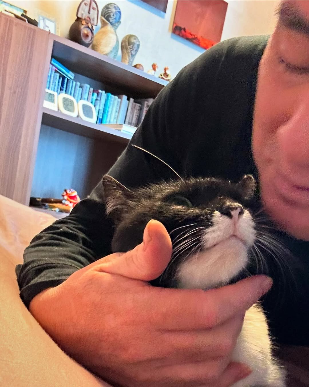 おはよう。 1週間ぶりぐらいの再会。 僕も最近、ほとんど帰宅できていなかったし、できたとしても、夜帰ってきて翌朝には飛んでいたので。寒かったし、心配していました...今朝の早朝(午前5時前)に「ニャン」が庭から聞こえてきて「クロだ!」と飛び起きて庭へ。