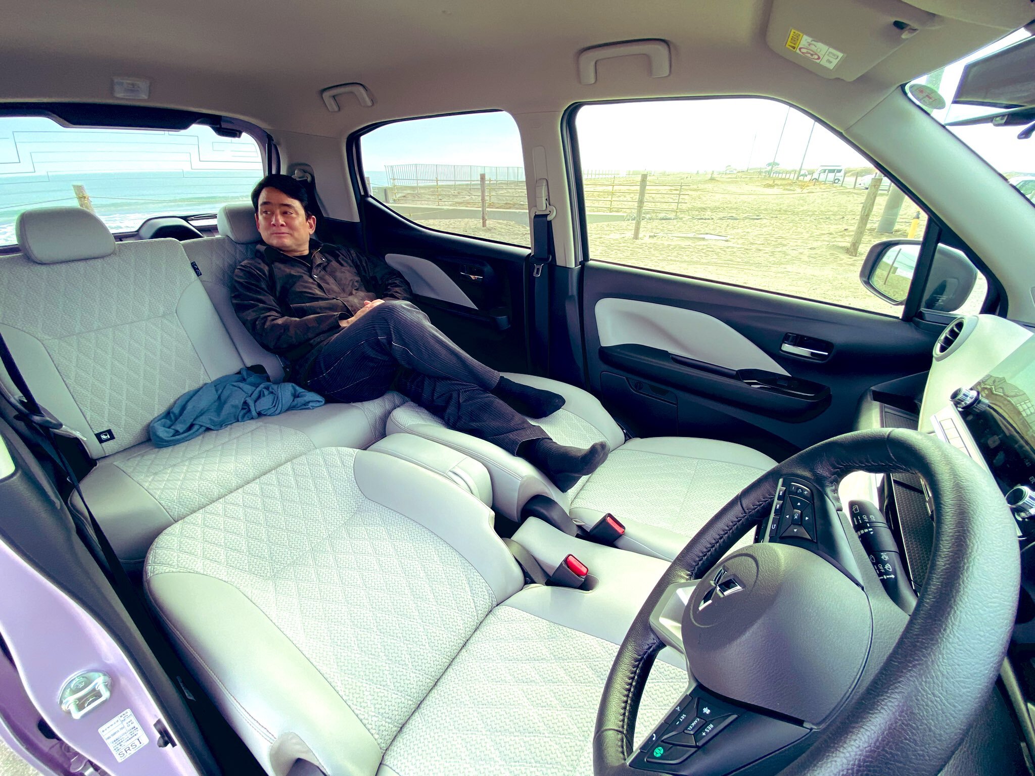 軽自動車である事を忘れてしまう程に余裕。車内にいると車のサイズ以上の広さを感じられる。走行距離はフル充電で約150キロ。