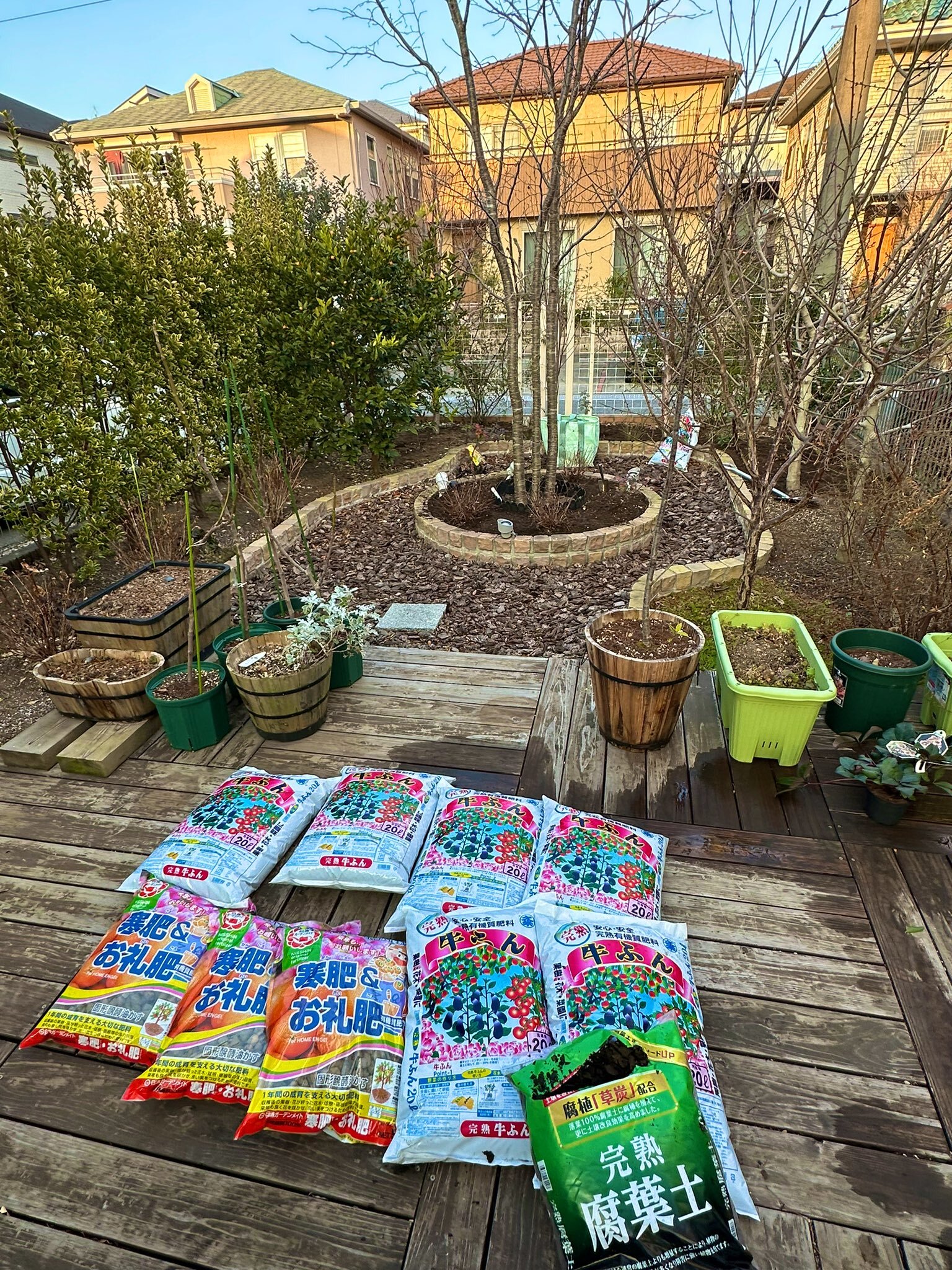 年に一回、庭中の土壌改良作業。 地面の表面を軽く掘り、牛糞や腐葉土、そして油粕を混ぜ込みます。 最後の確認は手がズボッと入るぐらいフカフカになっているかどうか。地味な作業ですが、土づくりは基本中の基本。 それに楽しい!!!気がつくと暗くなっていたり。