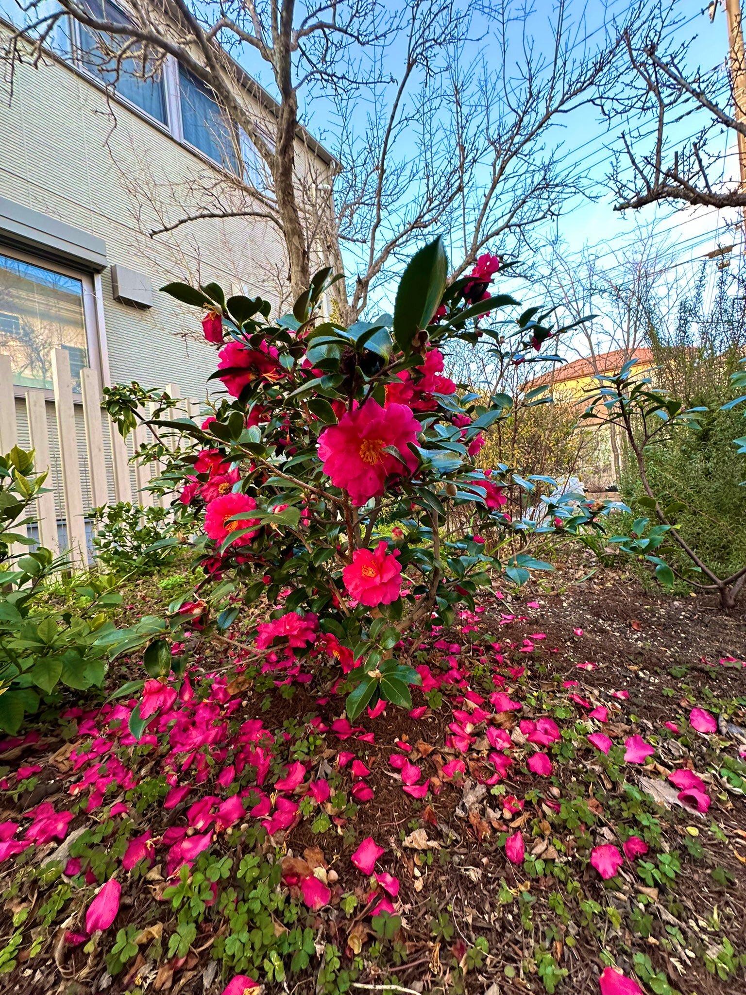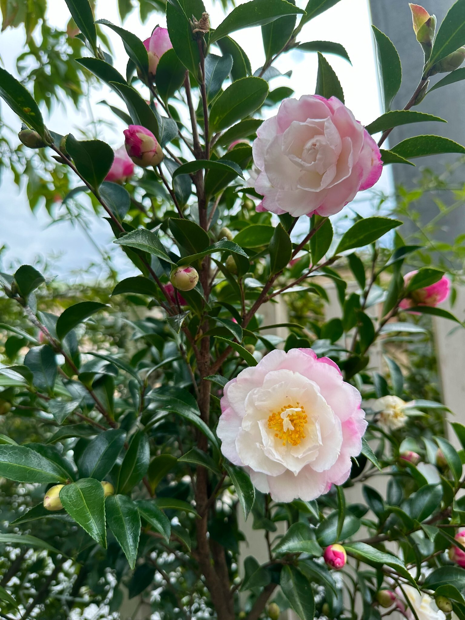 庭に山茶花が4本ありますが、色の少ない冬に秋から色を加えてくれるのが有難い。 作業中に山茶花を眺めながら一服がまたいい(^^)