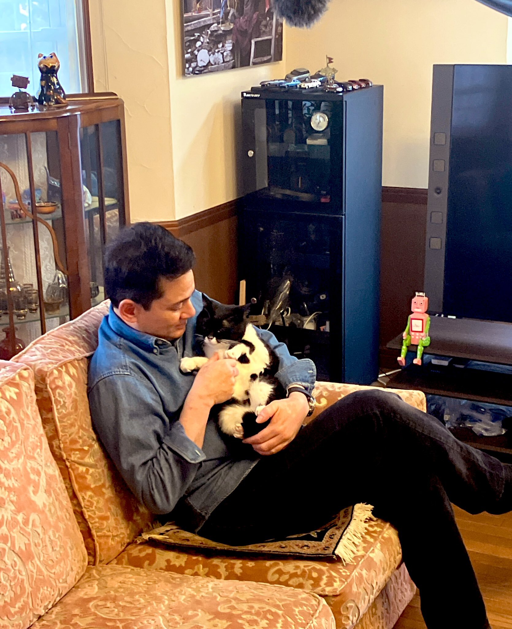 今日は丸一日、自宅ロケ。クロさんとの共演も。