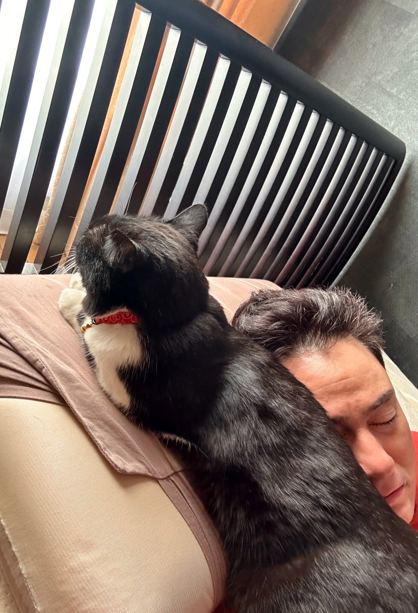 ただ、この睡眠スタイル、首が温かい。そして、2度寝に入ると、何故かいつもクロさんゴロゴロ鳴らしてくれます。
