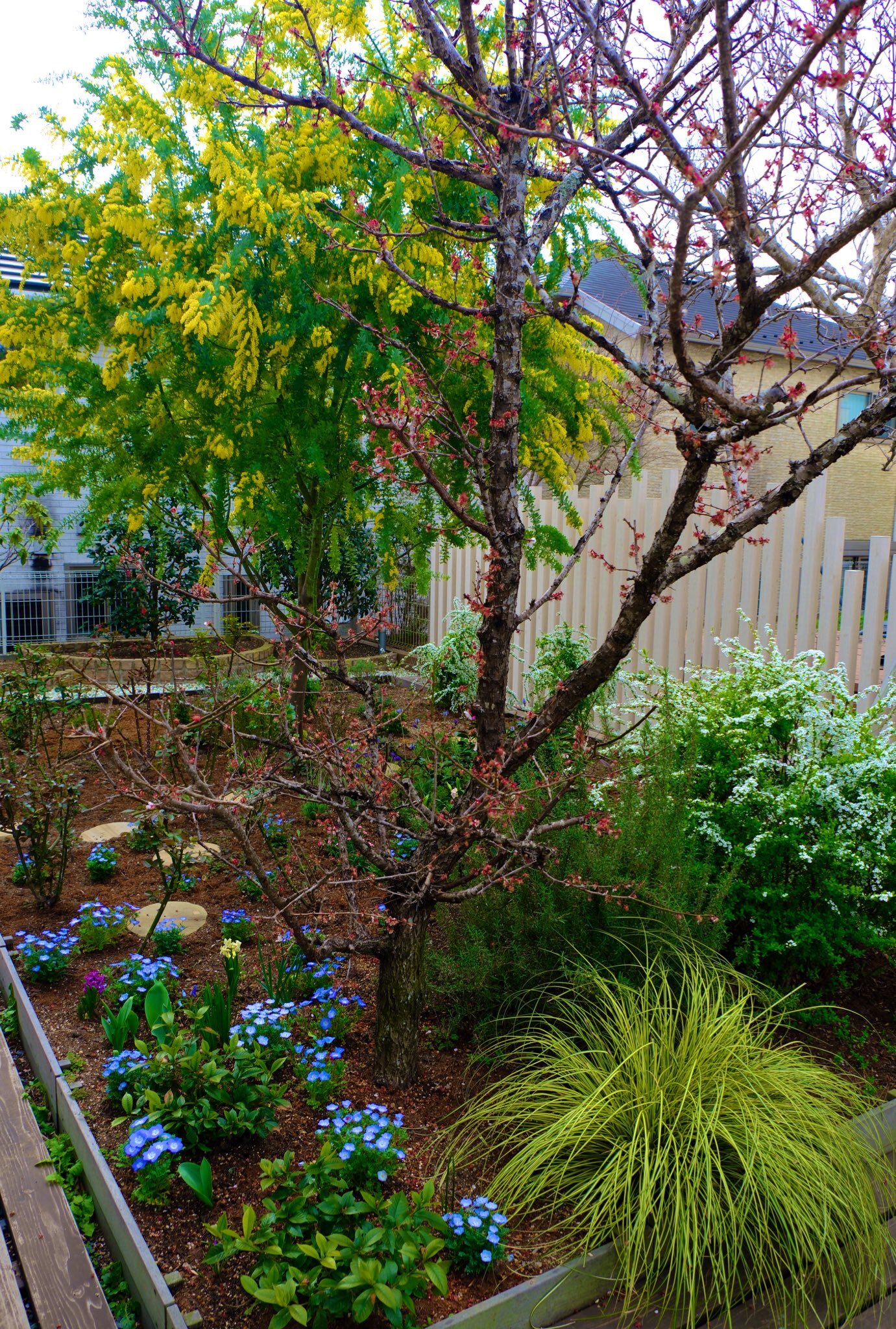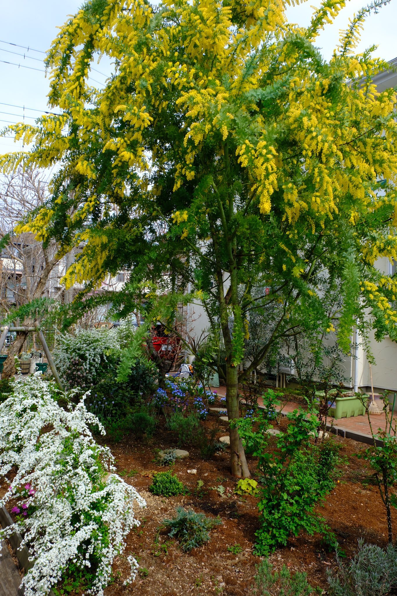 ミモザとユキヤナギの組み合わせ、合いますね。小さな河津桜も咲きました。 薔薇や紫陽花も一気に葉をだしてきました。 春のエネルギーを感じています。一年で1番、楽しい季節のスタート。