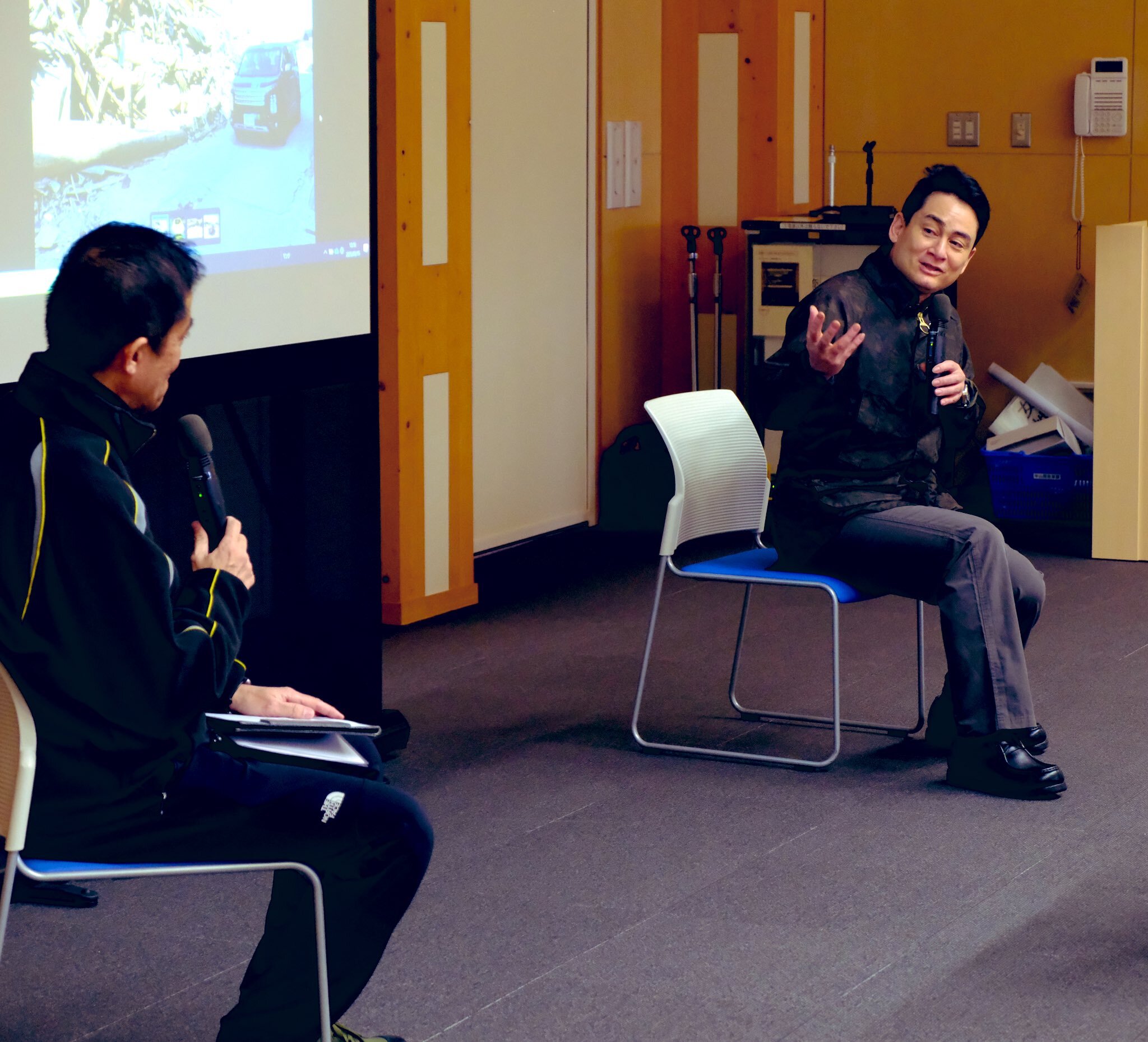 「アウトランダーの森」に入る前にトークショー。森づくりはヒマラヤや富士山麓で行ってきましたが、もう1箇所増えました。トークショーの最中から雨降りが・・・