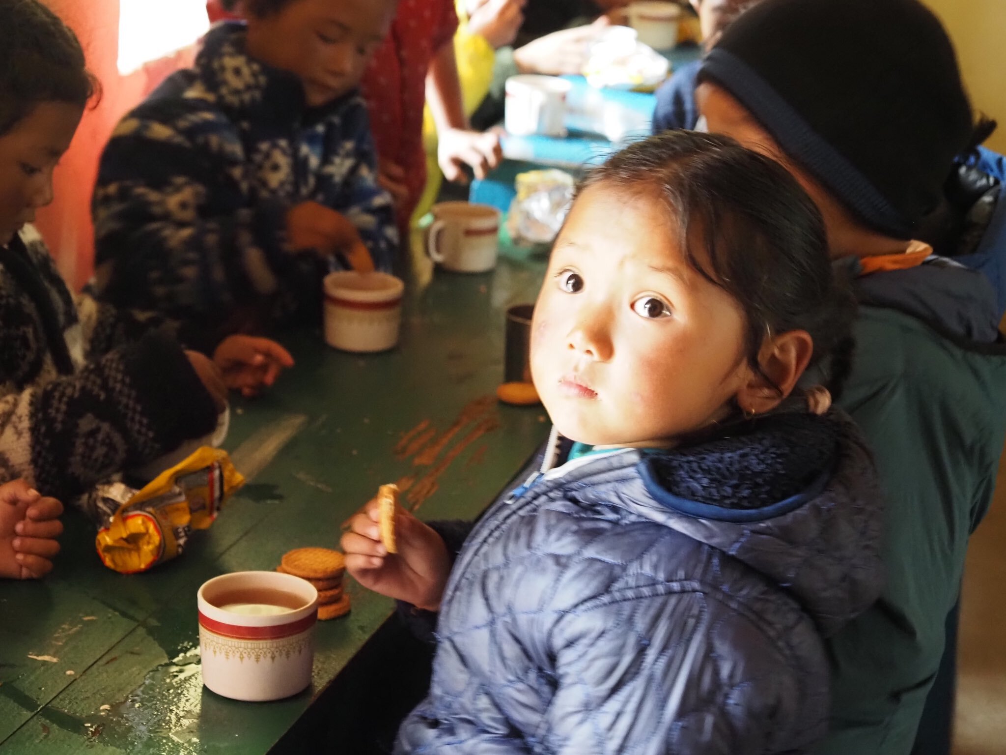 昨年の夏にターメ村の学校が流されクムジュン村での避難生活が続いていますが、この笑顔に救われる大人は多い。