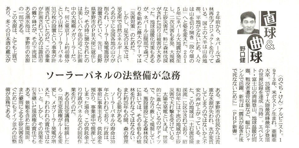 長きに渡り産経新聞にて連載コラムをやらせて頂いておりますが「大規模なメガソーラー開発」に対し懸念を抱いております。些か前の原稿になりますが、メガソーラーについて私の考え方を述べさせて頂いています。お読み頂けたら幸いです。私の環境活動の中でも山林を無意味に切り開くメガソーラー開発に対しては大きな危機感を覚えております。