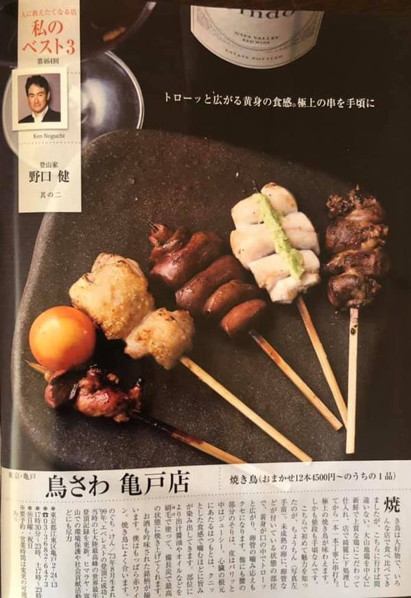 本日発売の週刊現代「人に教えたくなる店 私のベスト3」にて、感動の焼き鳥屋さん「鳥さわ 亀戸店」をご紹介させていただきました。巻末に掲載されておりますので、ぜひご覧ください。