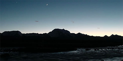 3分走って休む、そしてまた走ってみる。息が切れるが気持ちがいい。ここのところ、しばらく機能が停止していた細胞が生き返ったように体が生き生きしているのが分かる。一時間ほど、走ったり、歩いたり、柔軟体操したりした。明日はいよいよ、ABC(5600m)だ。まだまだ、いつもに比べたら程遠い体調だが、それでもこの4日間のBC滞在で最低限の高所順化ができたようだ。今日も自分の体と会話しながら体調がいいと