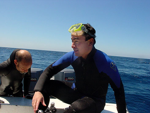 ツで身を包んでも寒い! 水深30mまで潜ったが突然キーンと水温が落ちたり、少し場所を移動したら暖かくなったりと海の中でも潮の流れによって水温が大きく変わる。そうゆう場所に魚は集まる。いままで40本以上 潜ってきたがいままでに見たことがないような魚の群れ。そしてアシカやウミガメがあちらこちらで優雅に泳いでいる。アシカと泳ぐ、これにまた感動。そしてインストラクターからはサメが多いと聞かされていた通り サメが近くを泳いでいる。慌ててさらに潜って避難するのだが、何匹も目にするうちに慣れてしまって気にもならなくなった。命あふれるガラパゴスの海の中でこの7年間に及んだエベレストの挑戦を無事に終えられたことに感謝していた。生きていられるからこそこの素晴らしい自然と出会え、また感動することもできる。しかし、15度以下の水温はやはり寒かったなぁ〜。