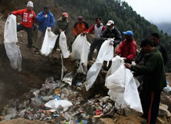 28日からナムチェバザール村で清掃開始。村人に「一緒にゴミを拾いませんか?」と声をかけるものの、「日当はいくら?」と聞かれガックリ。「自分の村を掃除するのだからお金は払えない」と返事すれば「それならば参加しない」とあっさり。ひなたぼっこしている若い男性二人に声をかけてみたら、「忙しいから」と言うので「ひなたぼっこしていて、なにに忙しいの?」と再質問してみたら困った顔しながら「忙しい」と繰り返していた。そして最後に「村のほうにゴミの処理費を払っているのだから我々はゴミを拾う必要はない」と本音を漏らした。