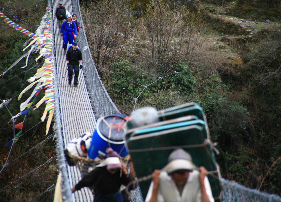 休憩中 エベレスト街道を登っていくのだが、各村で仲間たちとの再会がなんとも楽しい。92年から毎年、訪れてきたヒマラヤは今回で38回目。それだけに仲間が多い。再会してはその時の遠征団の話で盛り上がる。ただ、一つの悩みは決まって「チャンを飲め」と地酒を出される。「まだ移動中なので」とやんわりと断ろうものならば「何言っているの!ケンなら酔っぱらっても山の1つや2つは越えられるでしょう!」とさらにヒートアップ。おかげでベロベロに酔いながら目的地に向かって歩きはじめる。そしてまた違う仲間と再会。「ケン、一杯飲んでいけ!」と始まる。おかげで目的地になかなかたどり着けない。昨日は目的の宿に着いたのは夜の7時半。