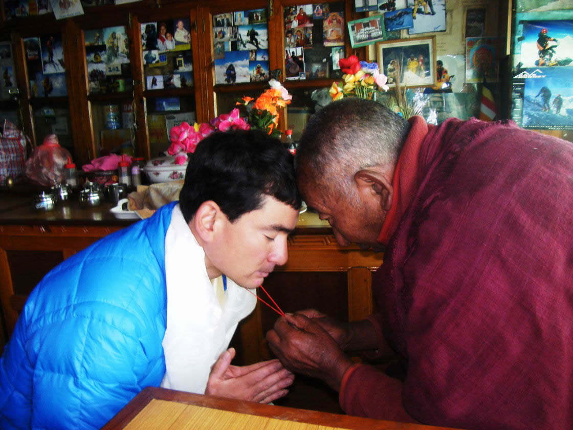 600年の歴史をもつパンボチェ寺院の高僧、ゲシュラさん(76歳)にチベット動乱についての感想をお聞きしましたが、「う〜ん」と短い沈黙の後に1つのお経をあげ、「これは400年前の僧侶が書いたお経です。人の土地や物を奪ったり、自分だけ裕福になろうとすると、結果的に災いが自分に跳ね返ってくる。これがチベット仏教の考え方です」とおっしゃられた。言葉を1つ1つ選びながら慎重に、しかし私にはゲシュラさんがなにを私に訴えたかったのか、言葉は少なかったですがそれだけに充分すぎるほどに伝わってきた。