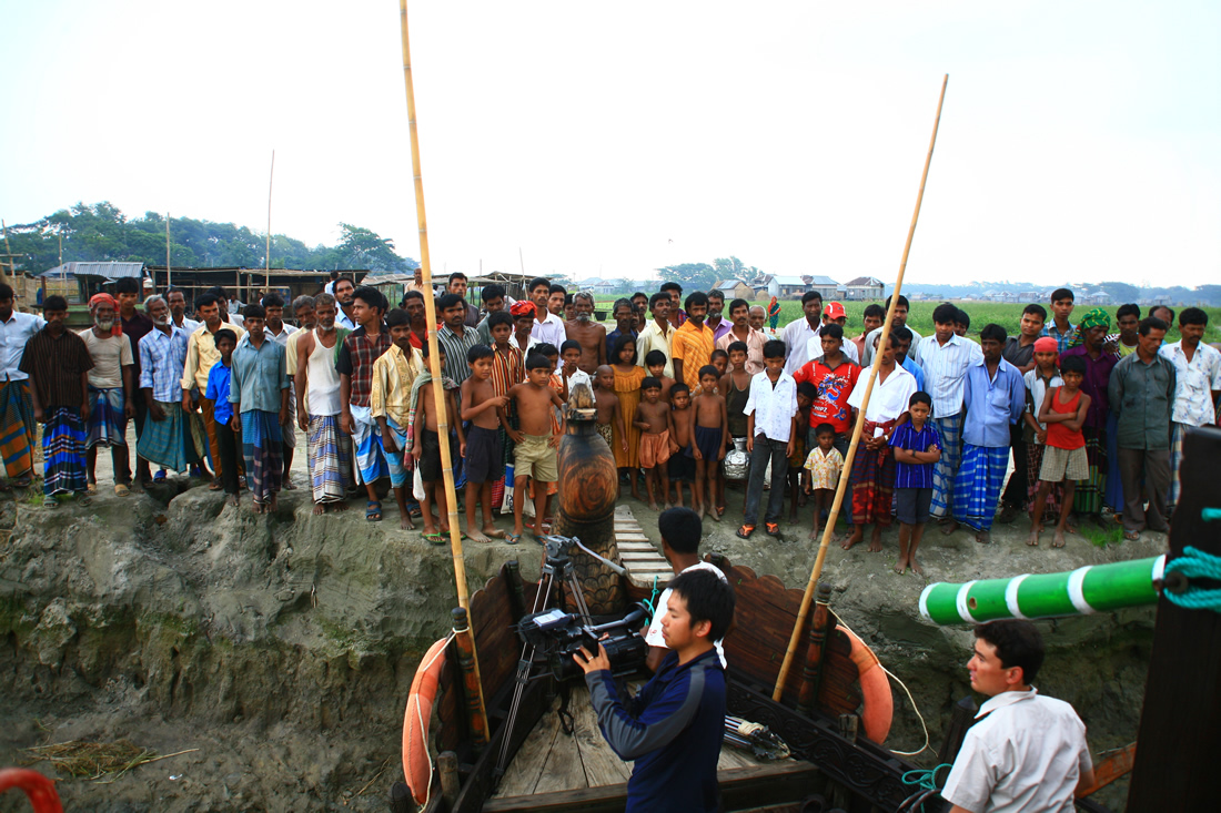 とであるが、それ以上に深刻なのは「土地ごと」失ってしまうことだろう。帰るところが無くなり人々はバラバラに離散するしかない。こうして人々の繋がりが引き裂かれてしまう。その残酷な現実に彼らになんて声をかけていいのか、必死に言葉を捜すが出てこない。しかし、1つ救われたのが子どもたちの目の輝きであった。深刻な被災地であり、ましてや現在進行形であるにも関わらず我々の訪問に喜んでくれ、大声で笑ってくれた。なかには我々を笑わせようと漫才師のようにジョークを連発してくる人もいた。逆に我々一行が彼らの笑顔に励まされた。「一からみんなで頑張るよ」との子どもの言葉に洪水と共に生きる彼らの生命力を感じていた。もし私の身に同じことが起きたら、あの美しい笑顔で人と接しまた人を励ますことができるだろうか。もう一度、彼らに会いたい。またハシャリ村に来ることになるだろうと、そんな事を想いながら首都・ダッカへと戻った。