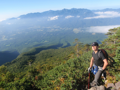 さっきまで喋りまくっていた野口さんとは別人のように渋い声。初秋の山に、後ろ姿が溶け合っていた。