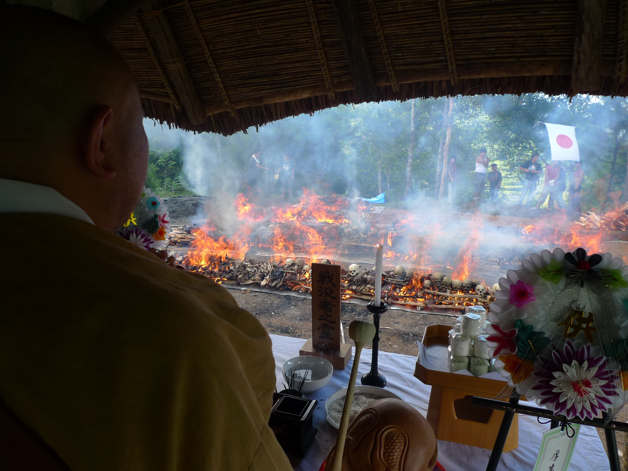 3月のご遺骨収集では419体でしたが、今回は3倍の1555体。空援隊と共に1つ1つ与えられた大きな責任を果たそうと活動を続けてきました。帰国と共にホッとし、また同時にまだまだ我々が収集したのはごく一部にすぎないと未だ多くのご遺骨がジャングルの中、また洞窟の中で放置、野ざらしにされたままです。今回もさらに800体以上のご遺骨が我々の元にありましたが、焼骨から書類作成作業まで時間的に間に合わず現地に建てた遺骨安置所に残して帰ってきました。本当に申し訳ない。山を降りる時にはどしゃ雨が降りましたが、私にはその800体もの御遺骨が「置いていかないでくれ」と訴えているようで心身ともに痛みました。年内には必ず日本に戻す。そう心に誓い帰国しました。