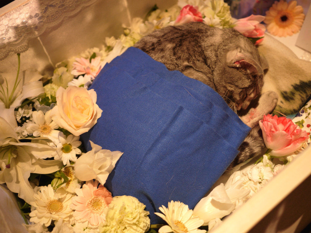 僕はその瞬間に最悪の事態を覚悟していた。警察署、保健所などに電話連絡しても情報はなかったが、午後になり警察署の方から「3日前に車にひかれて死亡している猫が清掃センターに運ばれている」との情報が入る。覚悟はしていたものの、その猫がリリではない事を祈りながら清掃センターに向かった。薄暗い廊下を案内され少し歩いたら目の前に冷凍庫があった。何秒間かその冷蔵庫をボーと眺めていた。「この中に猫の死骸が入っているので確認してください」との声にハッとし、目の前の現実に周囲の音がスーと遠のいていくかのような不思議な感覚の中、冷凍庫から出された段ボールを開けその中の白い袋をさらに開けた。間違いなくリリであった。リリに触れてみたら昨夜、夢の中で触ったあの感触と同じ。ただとても冷たかった。
