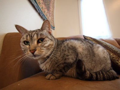 ナナはノラ猫出身だったのでいつも外出したがり、時に帰ってこない夜があったが、リリは外出しても10分も経たないうちに帰ってくる。そしてお気に入りのソファーでゴロゴロニャンニャン。