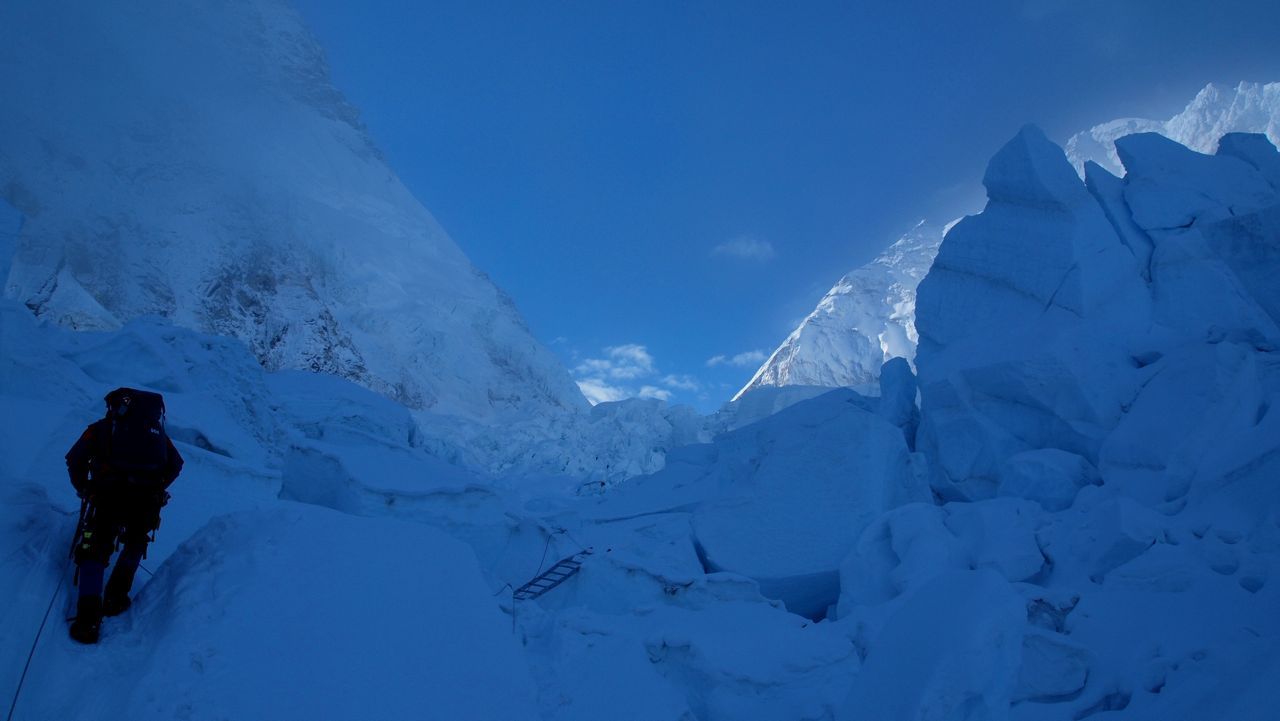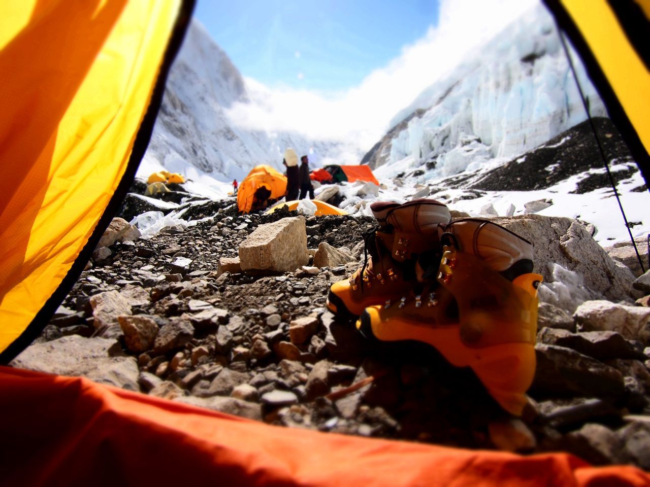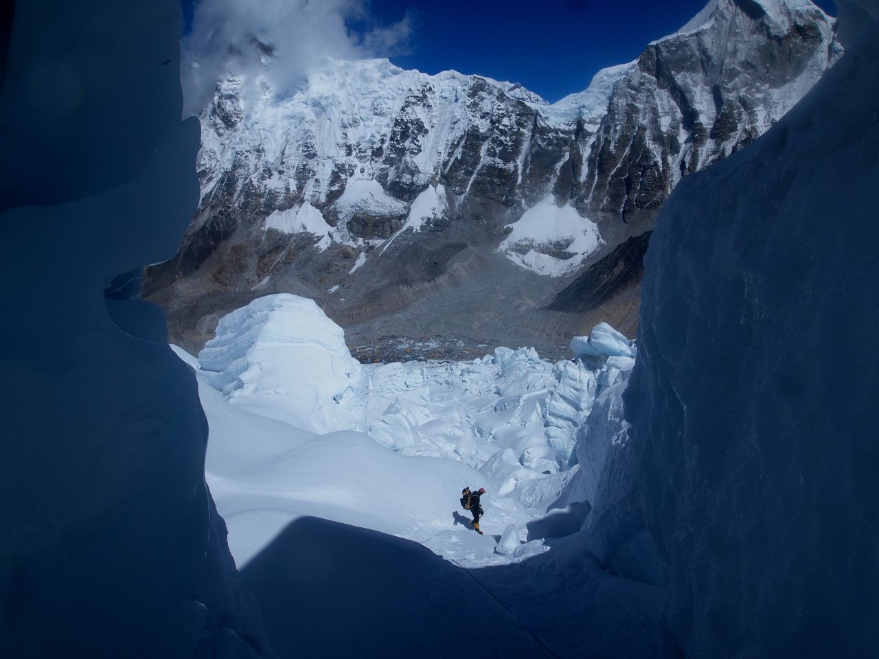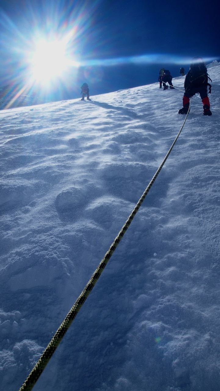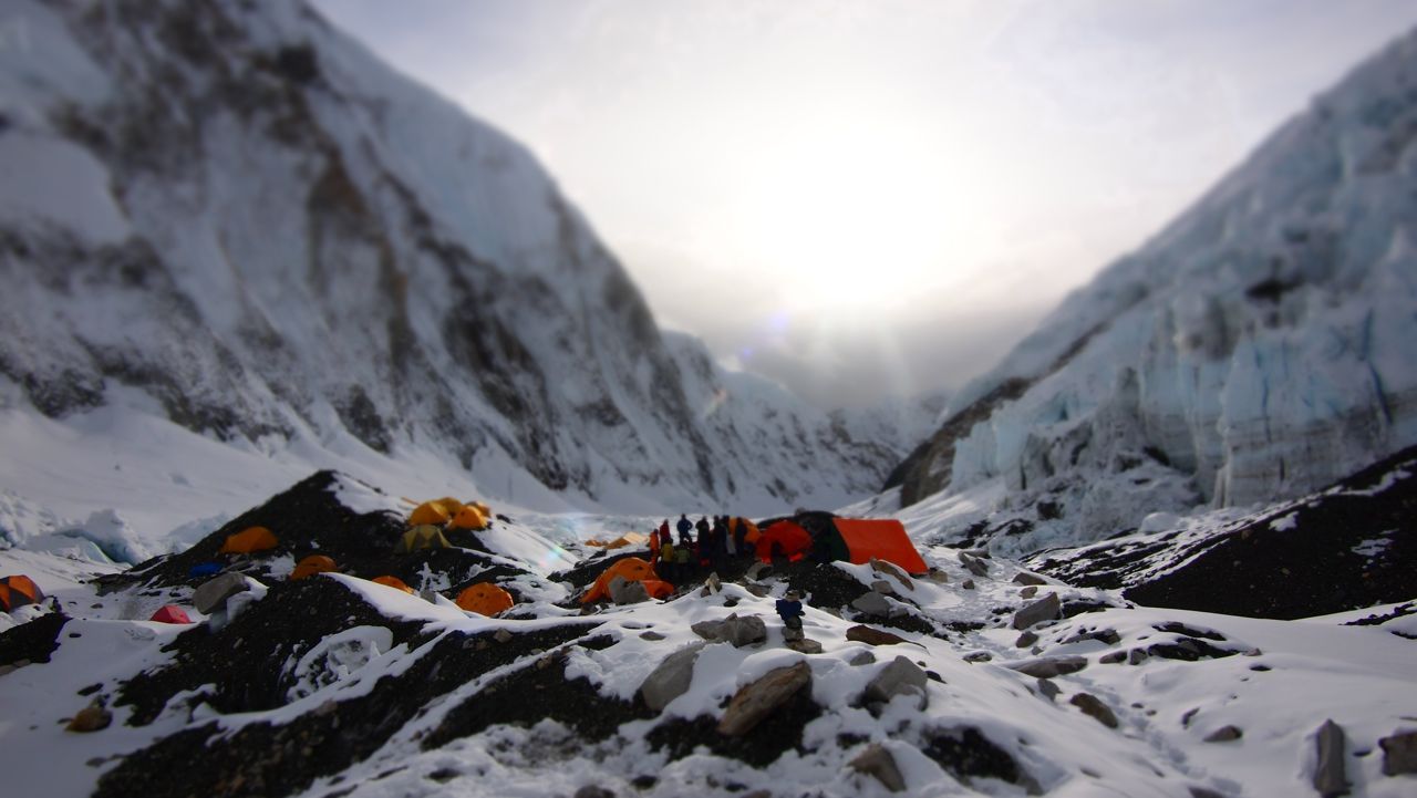 アイスフォールを超え、キャンプ1に到着。ここも吹きっ曝しで時にテントが飛ばされてしまうほど。ただ一面が真っ白な銀世界でまるで砂丘にやってきたみたいだ。キャンプ2に向かって歩いている登山隊員たちがまるで蟻の行列のように、大自然の中では人間の存在は点でしかない。はかなくもあり、また、逞しくもある。都会の中ではなかなか感じる事が少ないが、この大自然の中にいると人の存在が愛おしくなることがある。まるで高山植物のように厳しい環境下に耐えながらも、必死に、また健気に生きている。