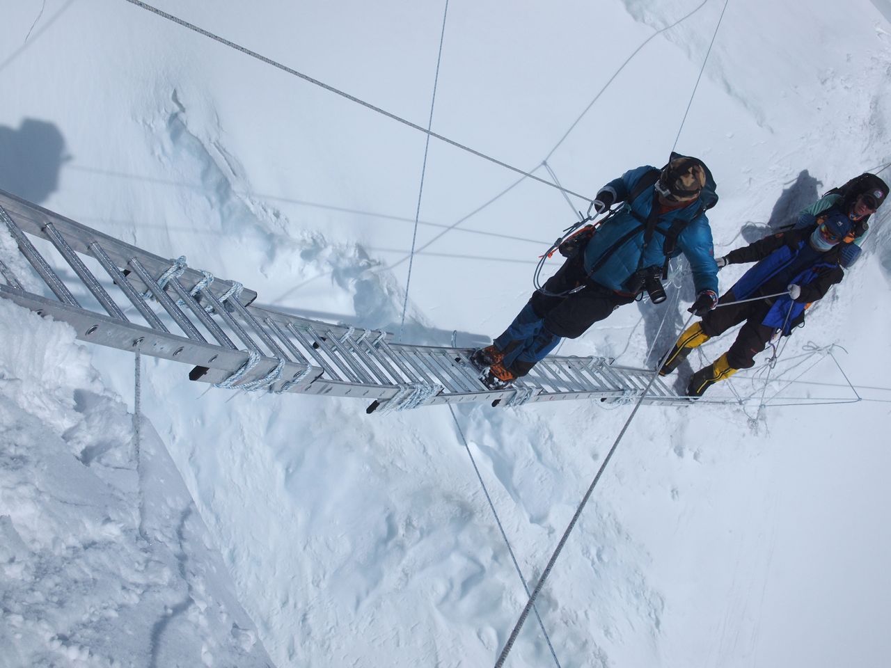 8年ぶりのアイスフォール越えとなったが、今年のアイスフォールはルートが安定していて状況がいい。クレパスの数も98年の秋に比べたら半分以下。そして氷がしっかりと固まっているので固定されているハシゴがさほどグラつかない。とっ、強がってみてもやはりハシゴ越えは心臓に悪い。
