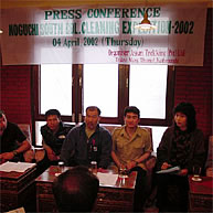 カトマンズ市内で記者会見、開きました。昨年以上に盛り上がりました。3回目の清掃登山で、我々の活動もようやく認知されてきたのと、清掃活動がネパール側に移った事で、ここネパールでの取り上げられ方が昨年とはまったく違う。ネパールの地元のメディアをはじめ、AP通信やロイター通信、共同通信などたくさんのメディアの関係者の方々が駆けつけてくれた。