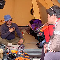 グルジア隊員のギーアはネパール側からのエベレスト登山は初めてであり、アイスフォールの状況がイメージできないのか、ノンキに同じくグルジア隊員でドクターのズーラと昼寝なんかしている。