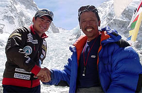 ベースキャンプにアッパー・シェルパが遊びにきてくれた。アッパーはエベレストに11回も登頂し、エベレスト最多登頂記録を樹立した方だが、けっして威張らず、いつも腰が低く、誰からも尊敬されているシェルパだ。アッパーは僕が設立したシェルパ基金にも共感してくれ、今年1月上旬に橋本龍太郎氏とカトマンズ入りした際も、ネパール山岳会の幹部との席上で共にし、シェルパ基金の必要性を訴えてくれた。これから、アッパーとは永い付き合いになるだろう。