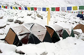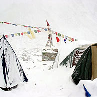 今年のヒマラヤはどうもおかしい。李さんの遭難騒ぎから、雪が振りやまない。日増しに雪崩の音が雪の重みのせいか、日に日に「ズシリ」と重くなっていく。湿りけのある重たい雪がその重さに勝てず、ベースキャンプ周辺の壁を流れ落ちる。雪崩の音にすっかり慣れっこになっていた我々も最近の雪崩の音には驚かされることもしばしば。我々が作った行動スケジュールがどんどん後にずれ込み、3日間の休養日のはずが、もうベースキャンプ滞在し、今日で一週間目になる。なかなか、進まない上部での活動にイライラするが、こればっかりはどうしようもない。