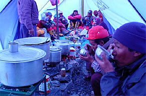 サウスコルまで上がっていたシェルパ達13人がキャンプ2に戻ってきた。彼らの中には1人でサウスコルから13本の酸素ボンベを担ぎ下ろしたシェルパがいる。約35キロだ。