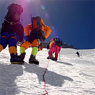午前6時30分、キャンプ3を出発。ローツェフェースをトラバースしながら、高度を少しずつ8000mへと上げる。酸素ボンベを担ぎ、酸素吸入しながらの登山だが、それでも息が切れる。今日中にサウスコルを清掃し、キャンプ2まで下らなければならないので、急がなければならないのだが、体はなかなか動かない。時より吹く地吹雪に気分が萎える。村口・渡辺・野口・シェルパ1人の計4名でもくもくと登る。63歳の渡辺さんの足取りは驚くほど軽い。僕と村口さんが置いて行かれてしまう。すごい63歳だ。