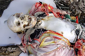 サウスコルの端までなんとか、遺体を移動したら、そこでまた別の遺体を発見。頭部のみ白骨化した遺体。シェルパの話では92年に遭難死したインド人の遺体だとか・・・。サーダのダワタシは92年インド隊がサウスコルで遭難した際、たまたま別の登山隊のサポートでサウスコルにいた。ダワタシは夜中に、泣き叫ぶインド人の声を聞いている。救助に向かおうと思っていたら、インド隊員がダワタシのテントに救助を求めてきた。その10分後、インド隊のほうから、